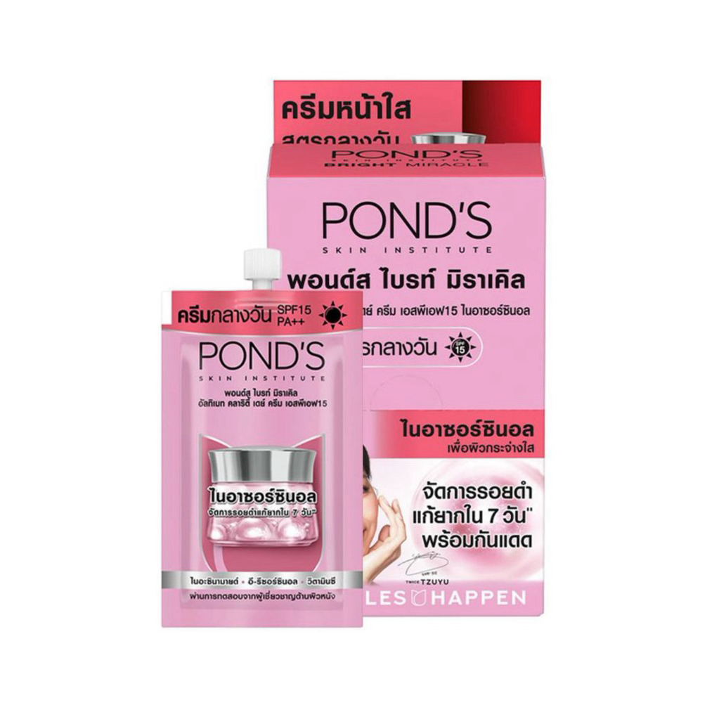 (ยกกล่อง)(6ซอง)🩷6.5g ครีมพอนด์ POND'S พอนด์ส ไบรท์ มิราเคิล อัลติเมท คลาริตี้ เดย์ครีม เอสพีเอฟ 15 Pa++ 6.5 ก.