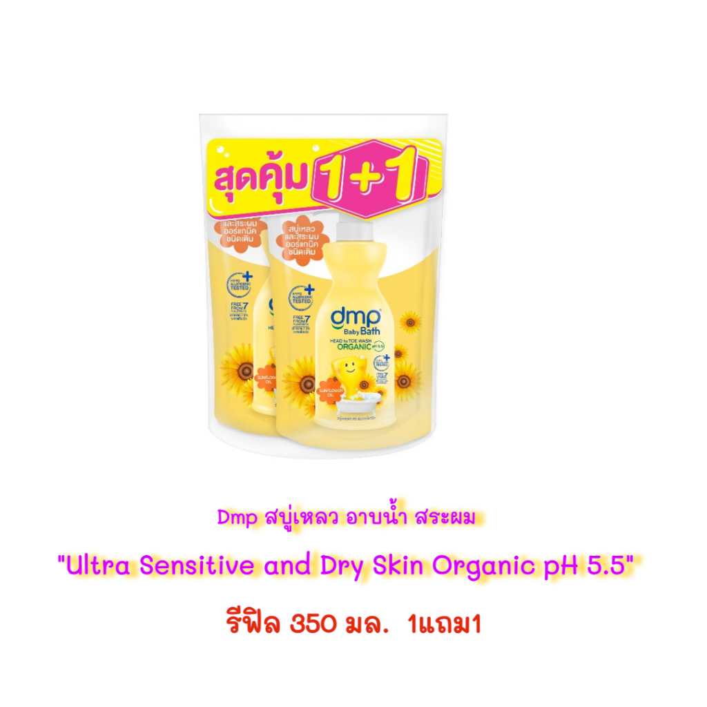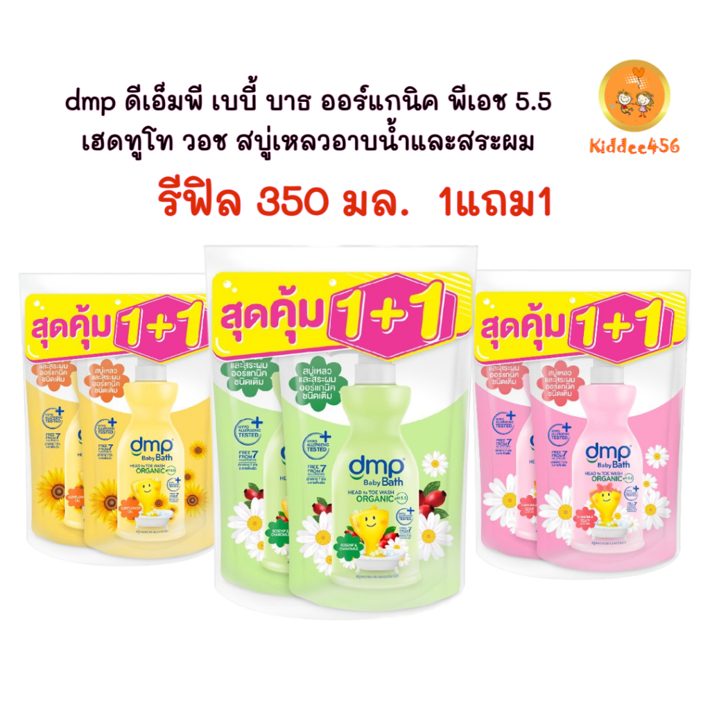 (รีฟิล 350มล 1+1) DMP ดีเอ็มพี สบู่เหลวอาบน้ำเด็ก อาบน้ำและสระผม สำหรับเด็ก ออแกนิค p.H 5.5