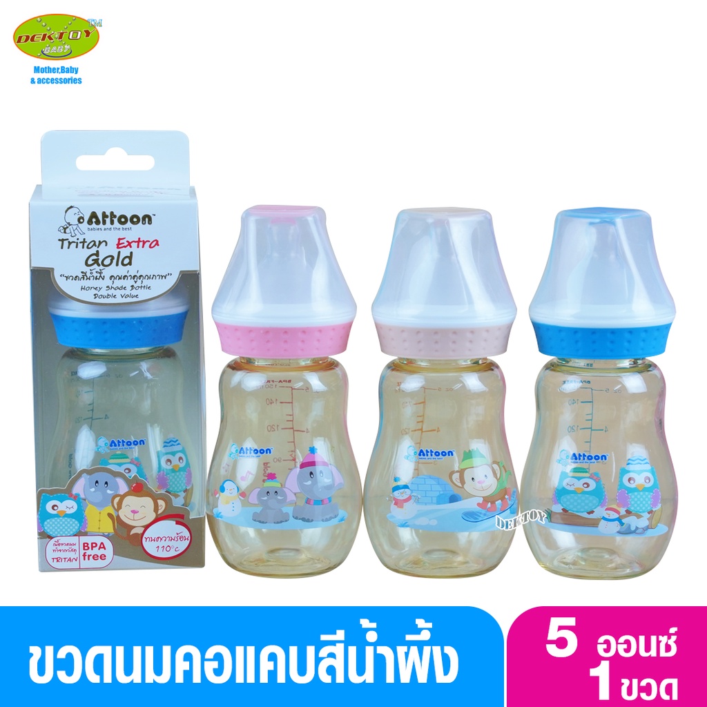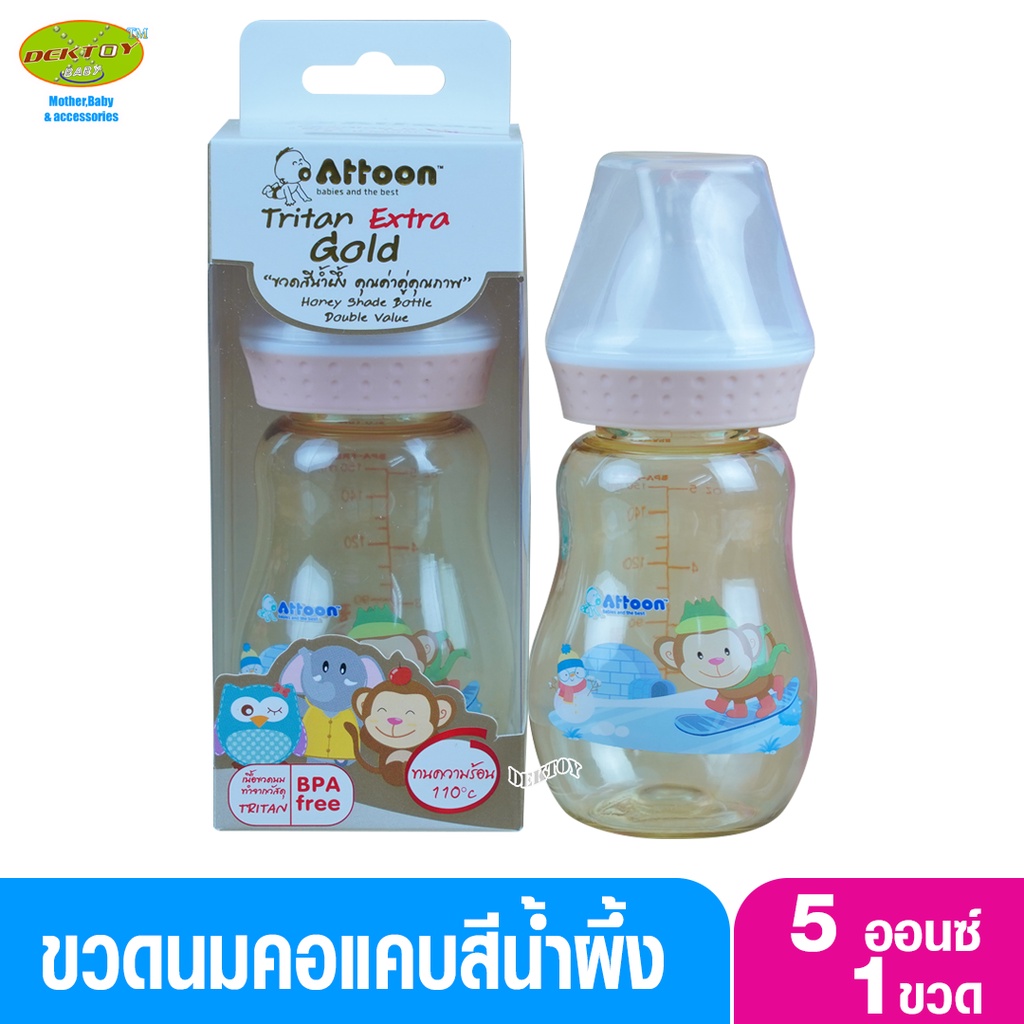 Attoon แอทตูน ขวดนมแอทตูนคอแคบสีน้ำผึ้ง Tritan Extra Gold 5 ออนซ์