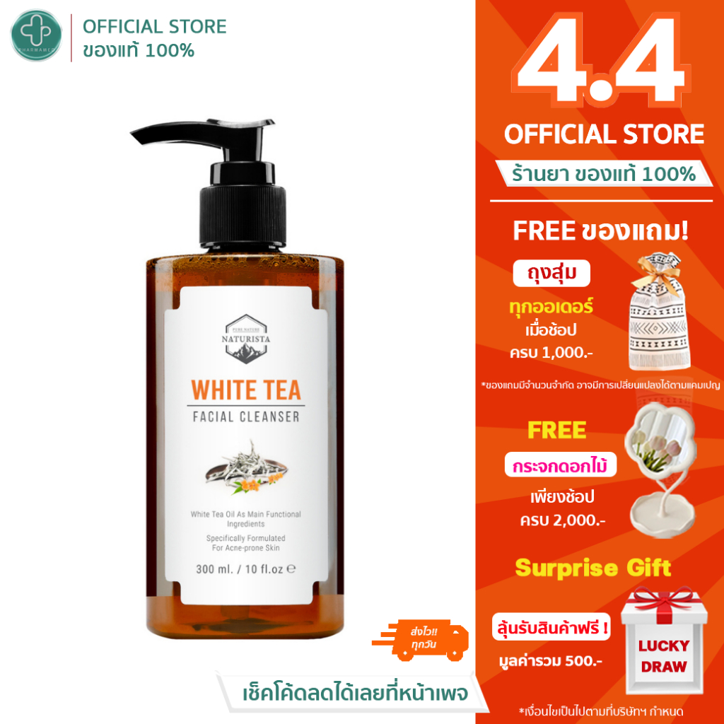 Naturista White Tea Facial Cleanser 300ml เจลล้างห น้าชาขาว สูตรอ่อนโยนไม่มีน้ำหอม ช่วยลดเลือนริ้วรอย และจุดด่างดำ