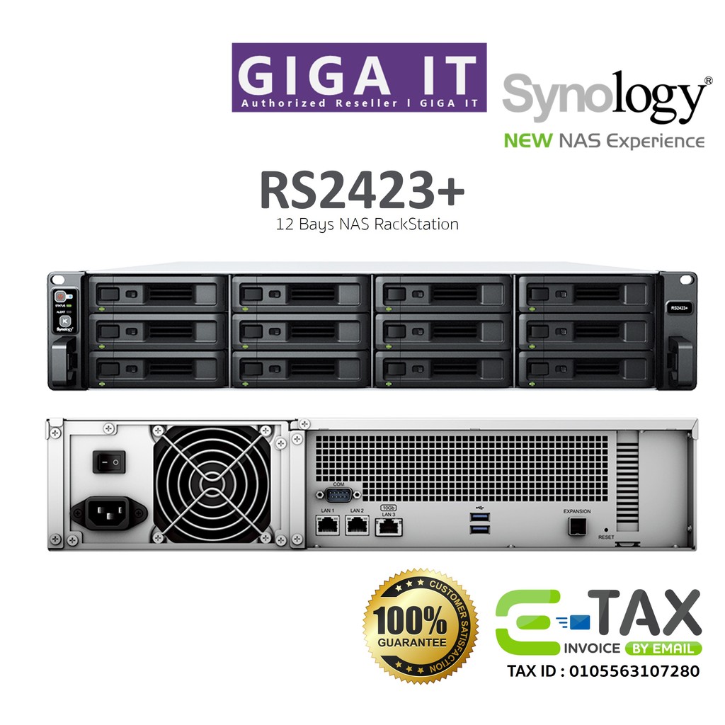 Synology NAS RackStation RS2423+ / RS2423RP+ อุปกรณ์เก็บข้อมูลเครือข่าย (HDD 12 Bays, V1780B, 8GB) ประกันศูนย์ไทย 3 ปี