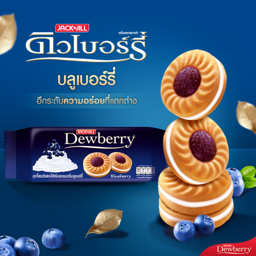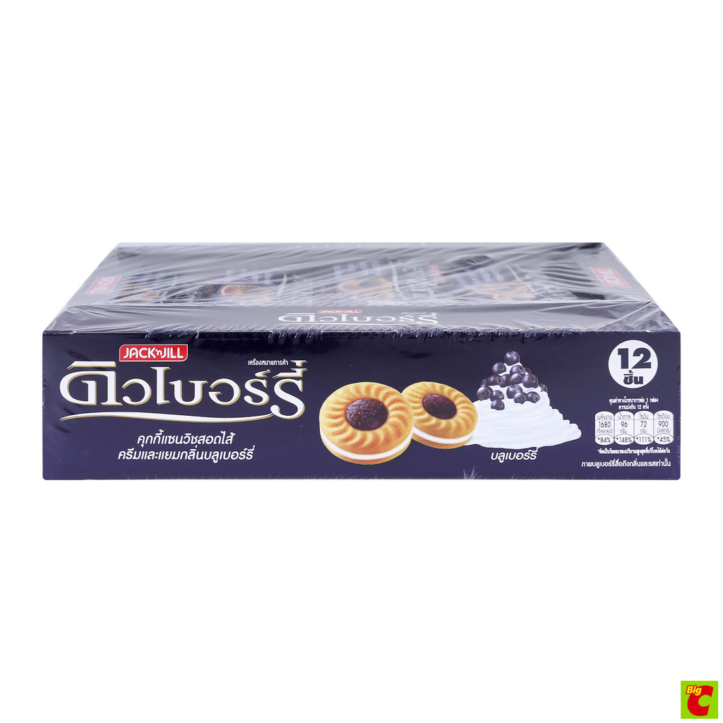 ดิวเบอร์รี่ คุกกี้แซนด์วิชสอดไส้ครีมและแยม กลิ่นบลูเบอร์รี่ 27 ก. แพ็ค 12