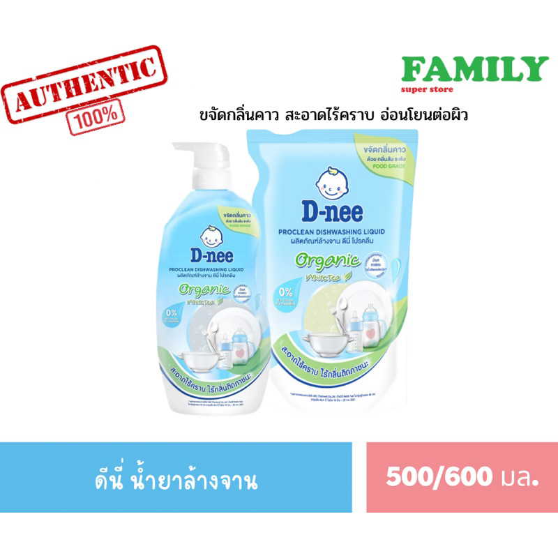 D-nee ดีนี่ ผลิตภัณฑ์ล้างจาน น้ำยาล้างจาน โปรคลีน ออร์แกนิค ไวท์ที 500/600มล. [004]