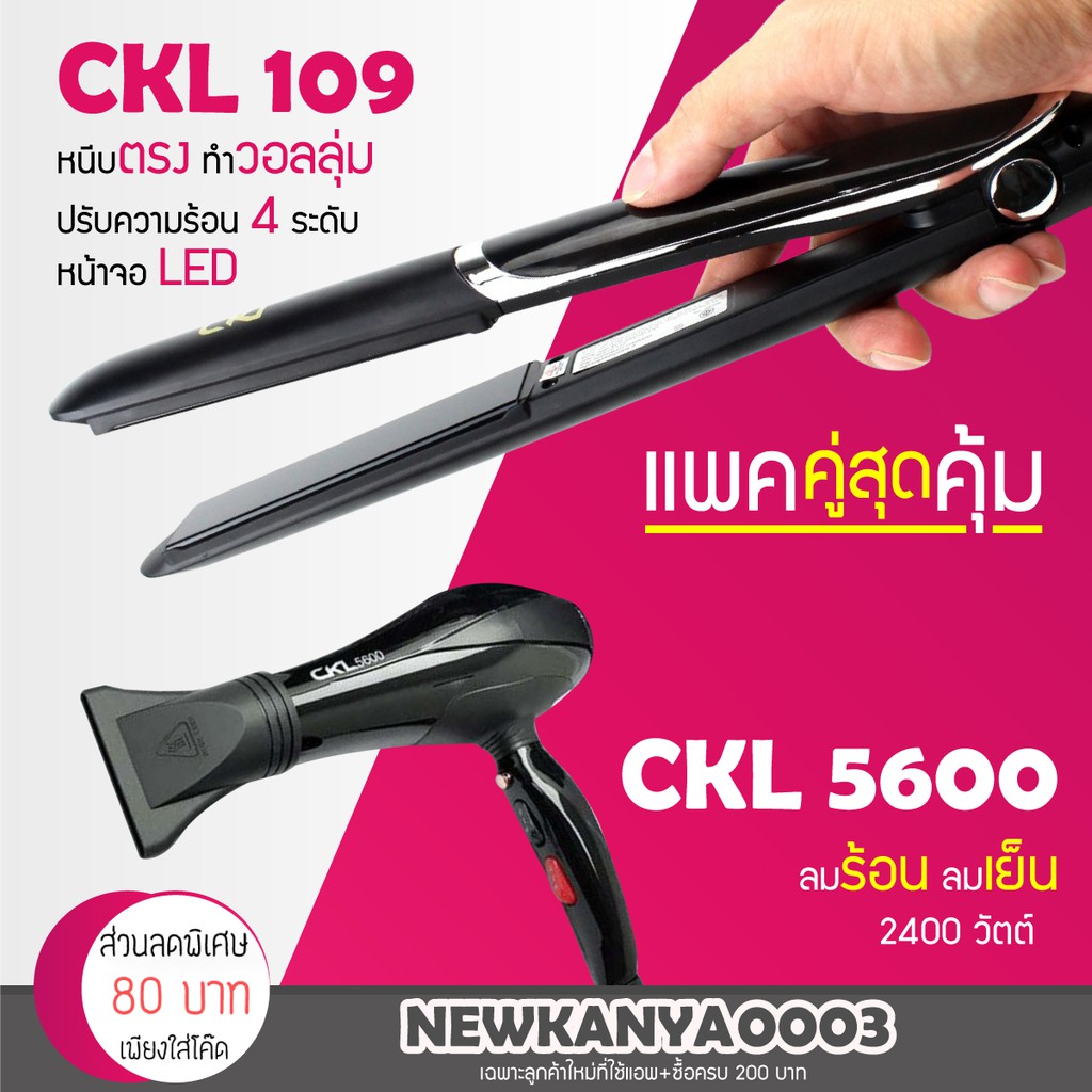 LIC 🔥 (แพคคู่สุดคุ้ม) 🔥 เครื่องหนีบผม CKL 109 + ไดร์เป่าผม CKL 5600