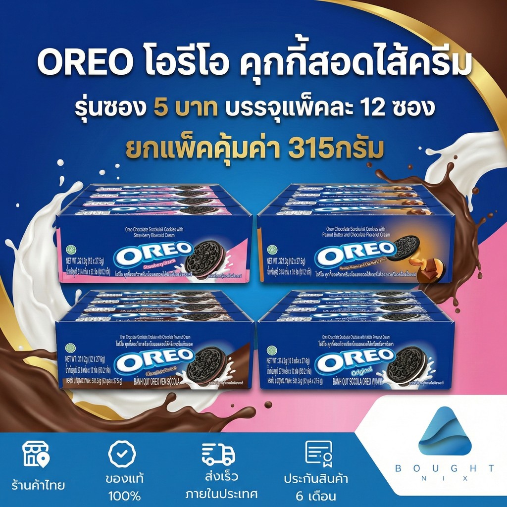 OREO โอรีโอ คุ้กกี้สอดไส้ครีม บรรจุแพ็คละ 12 ซอง 315 กรัม ยกแพ็คคุ้มค่า