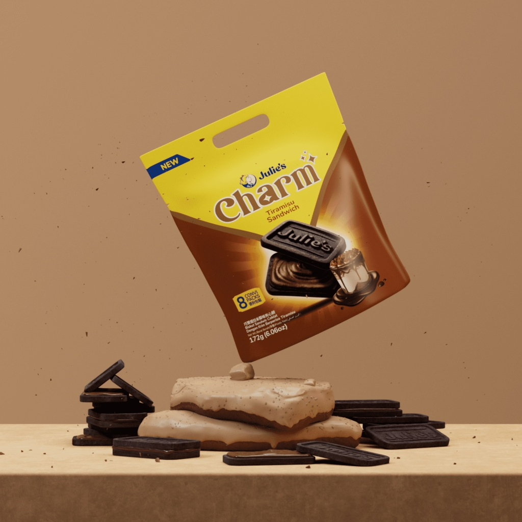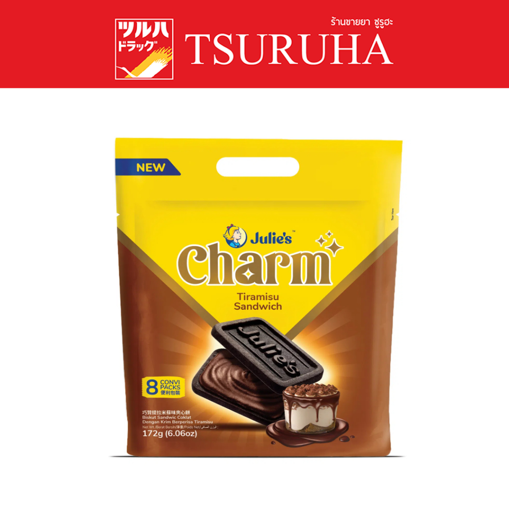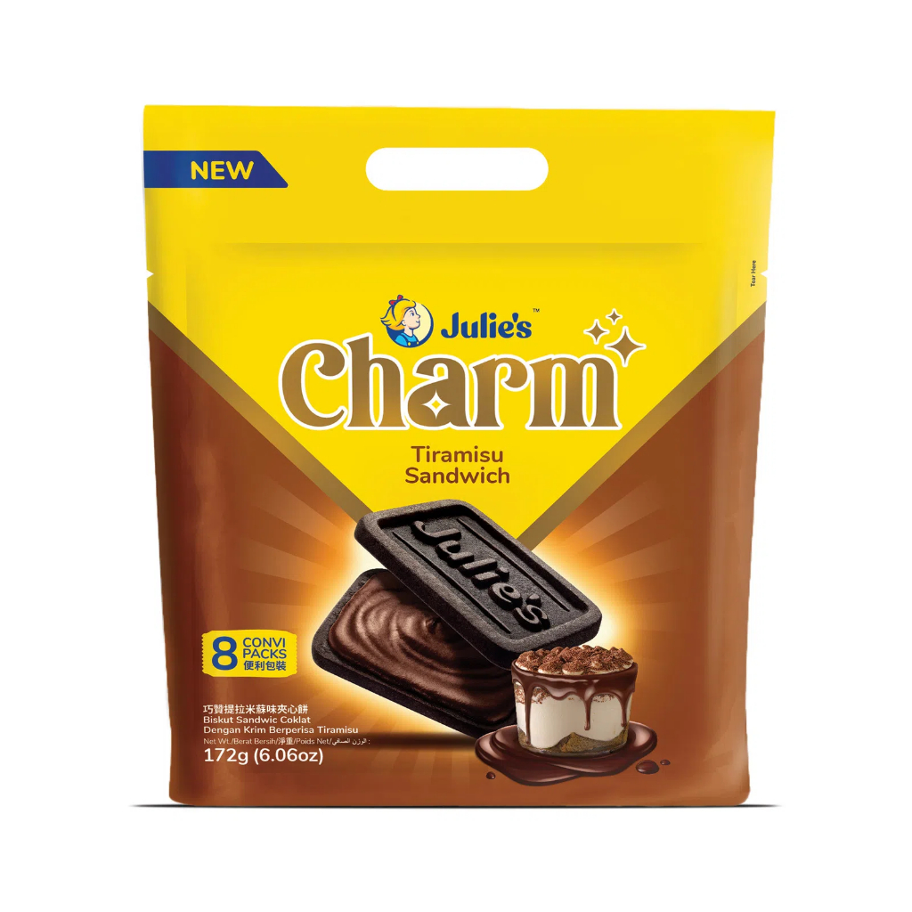 จูลี่ส์ ชาร์ม ทีรามิสุ แซนด์วิช (ขนมปังกรอบสอดไส้ทีรามิสุ) 172 กรัม/Julie's Charm Tiramisu Sandwich 172g.