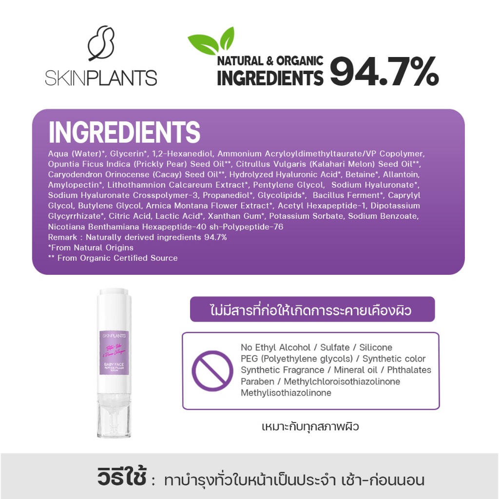 SKINPLANTS เซรั่ม Baby Face Peptide Filler Serum 15 ml. เซรั่มหน้าเด็ก ผิวเต่งตึง