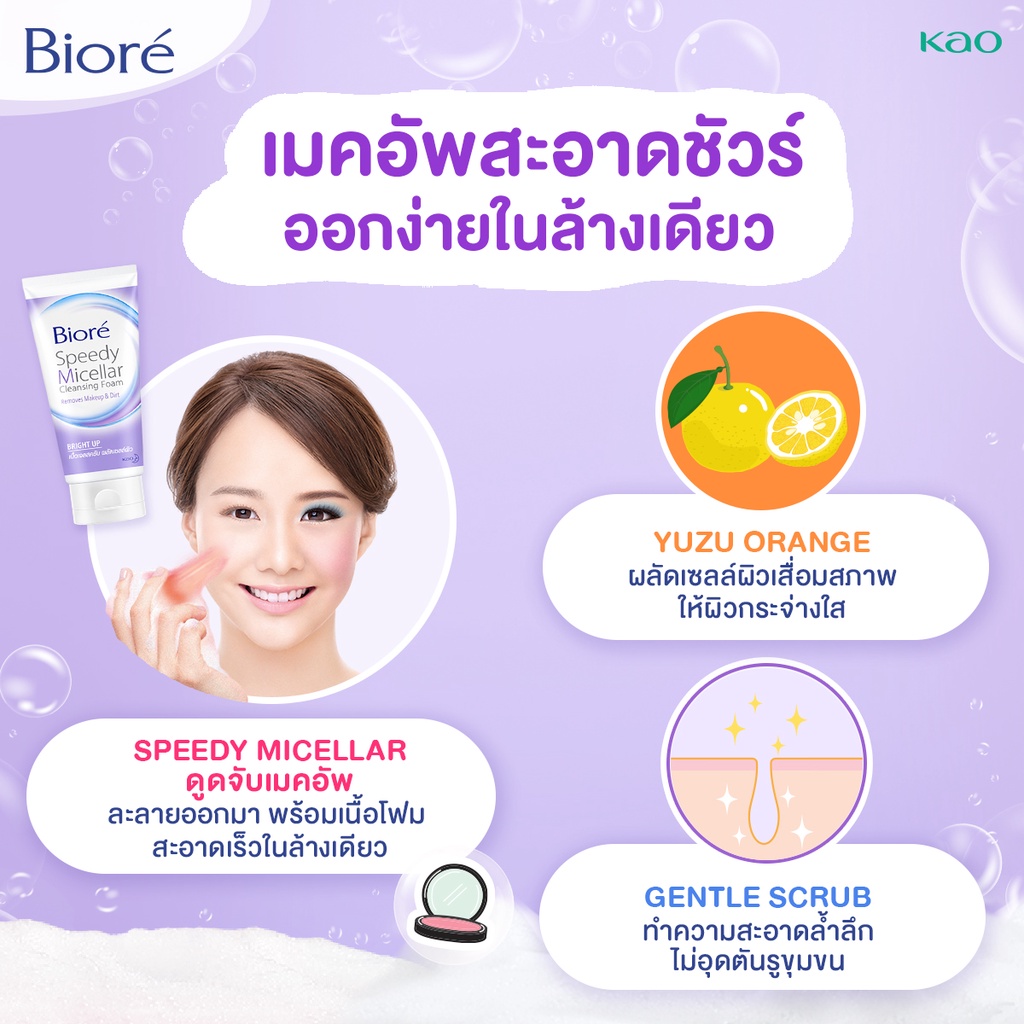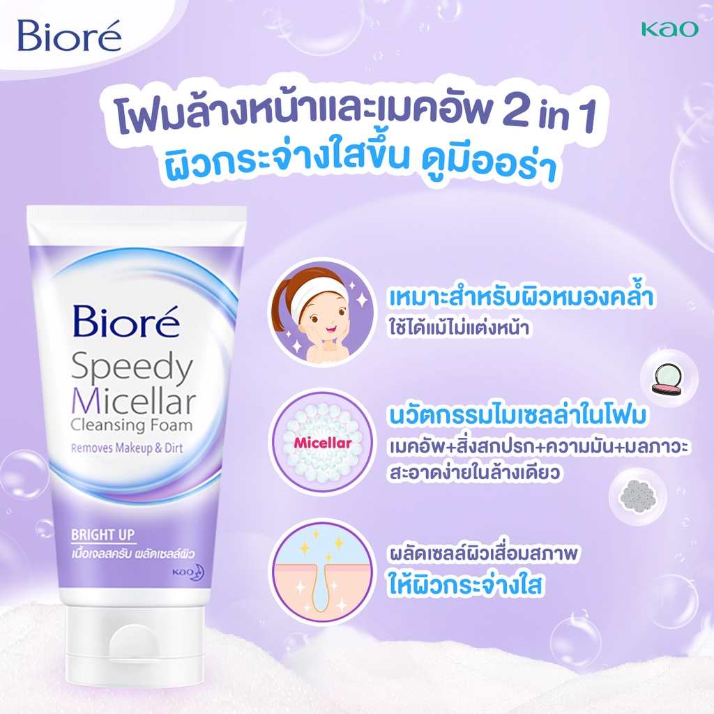 บิโอเร สปีดี้ ไมเซลล่า คลีนซิ่ง โฟม ไบร์ท อัพ 90ก Biore Speedy Micellar Cleansing Foam - Bright Up 90g