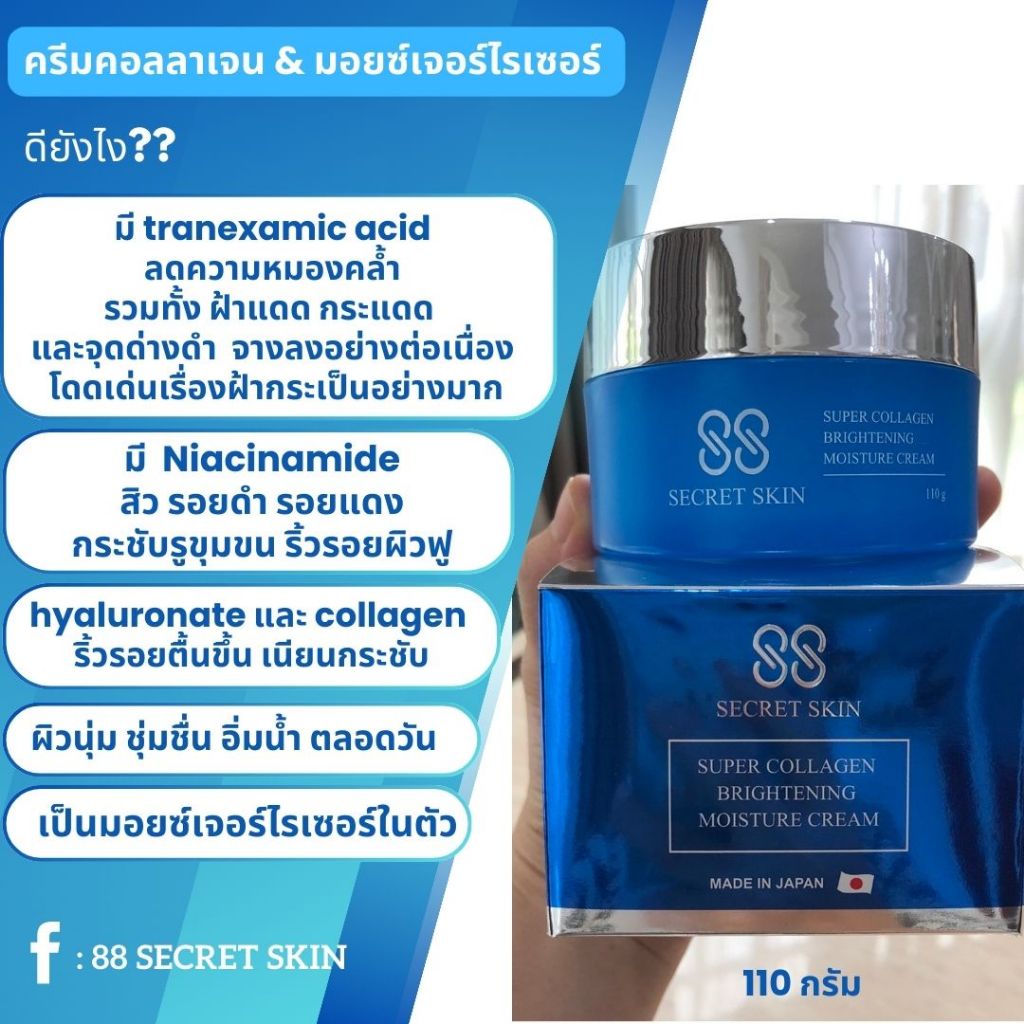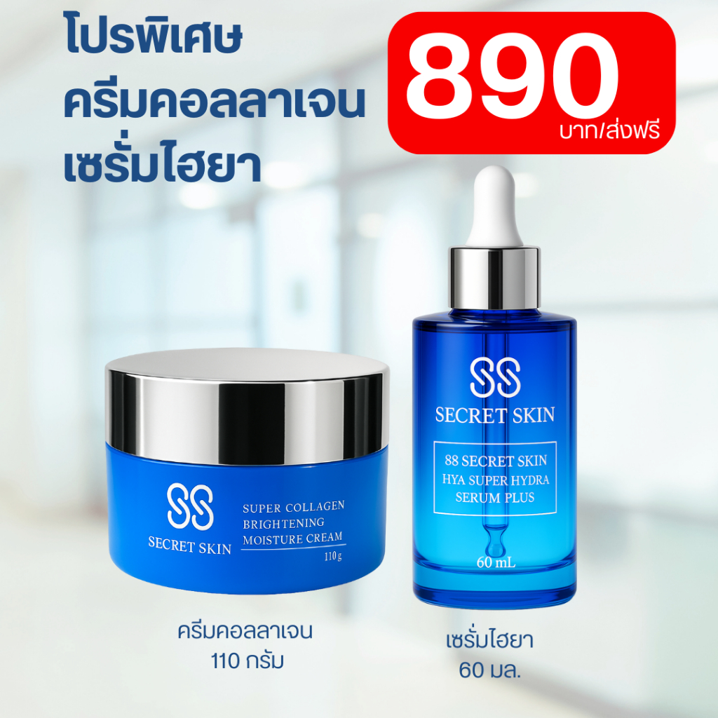 88 SECRET SKIN ครีมคอลลาเจน1กระปุก+เซรั่มไฮยา1ขวด