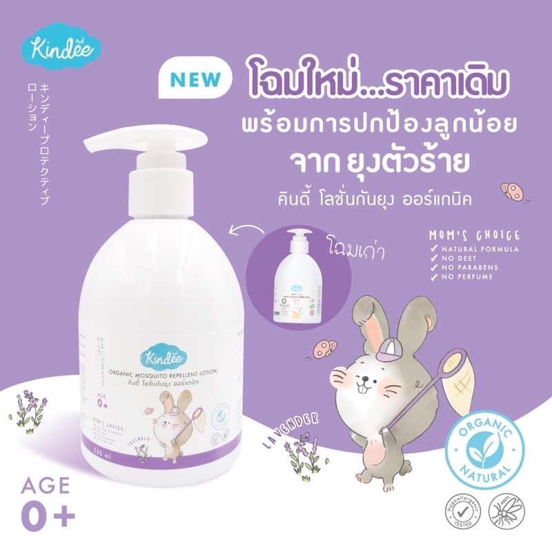 Kindee โลชั่นกันยุง ออแกนิค สำหรับเด็กแรกเกิดขึ้นไป 15ml, 80ml
