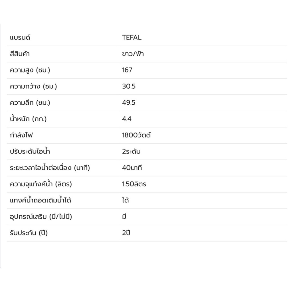 TEFAL เครื่องรีดผ้าไอน้ำ รุ่น IT2460E0 (1.5 ลิตร / ไอน้ำต่อเนื่อง 40 กรัม:นาที)