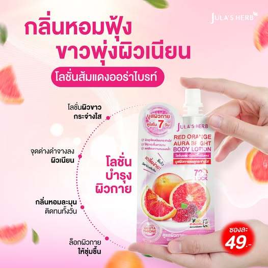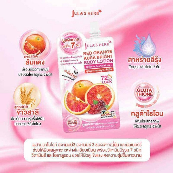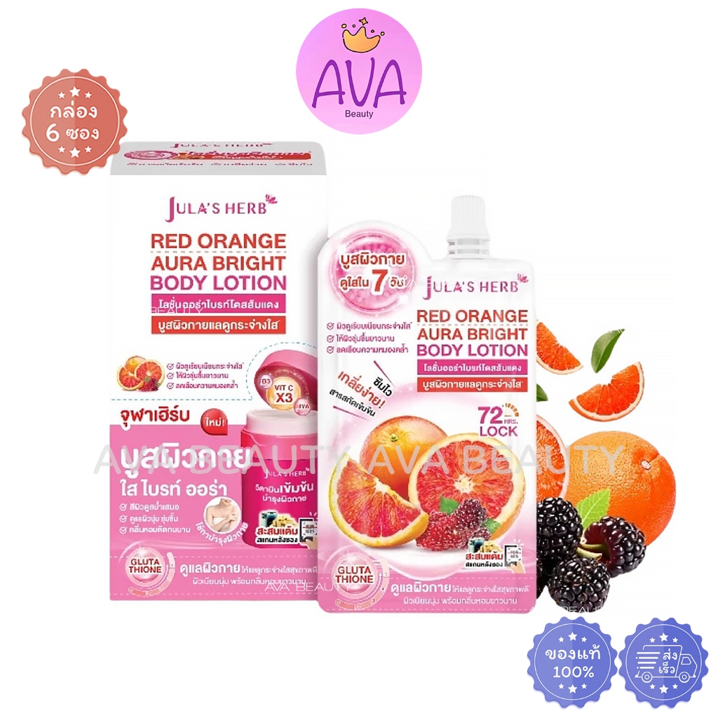 (6ซอง/กล่อง) Jula Herb Red Orange Aura Bright Body Lotion จุฬาเฮิร์บ โลชั่นส้มแดง บอดี้โลชั่น [4068]