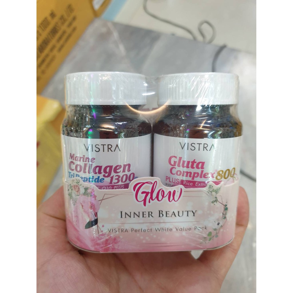 set marine Gluta 30 เพื่อผิวขาวเปล่งประกาย VISTRA PERFECT WHITE GLOW INNER BEAUTY VISTRA COLLAGEN1300+GLUTA COMPLEX800