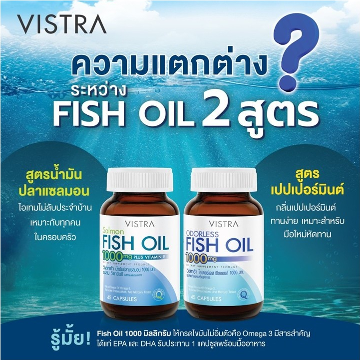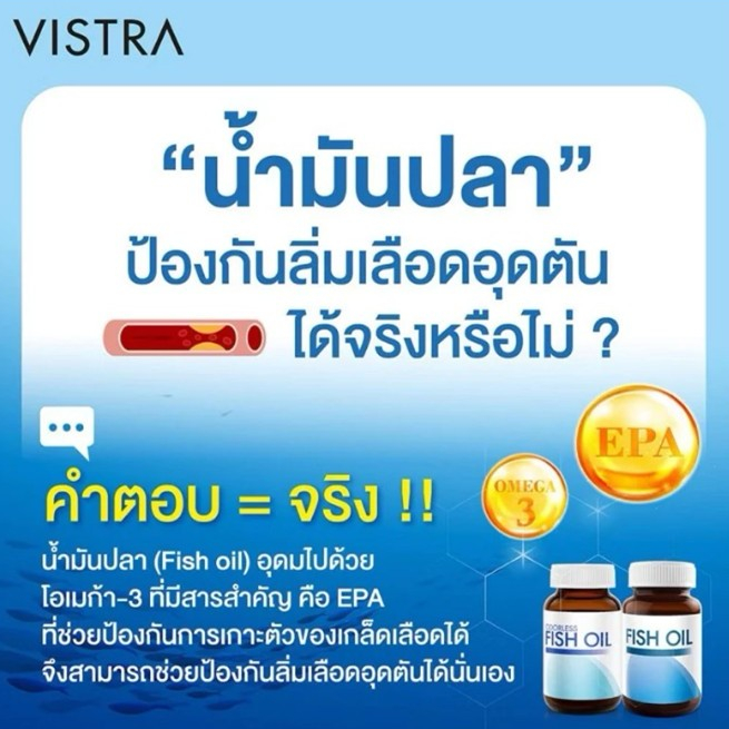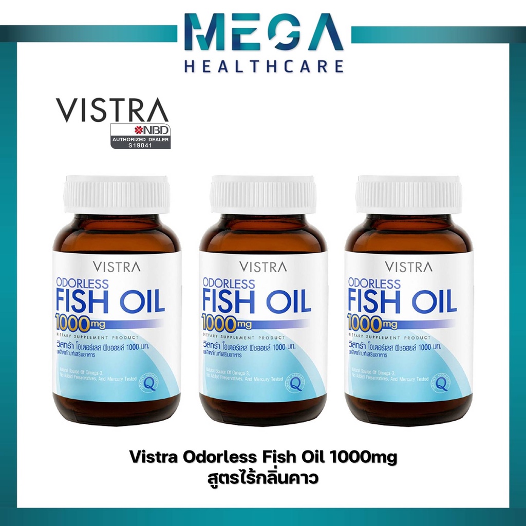 ((ซื้อVistra3ขวด)) VISTRA วิสตร้า Fish Oil FishOil น้ำมันปลา ฟิชออย Odorless ไม่มีกลิ่นคาว