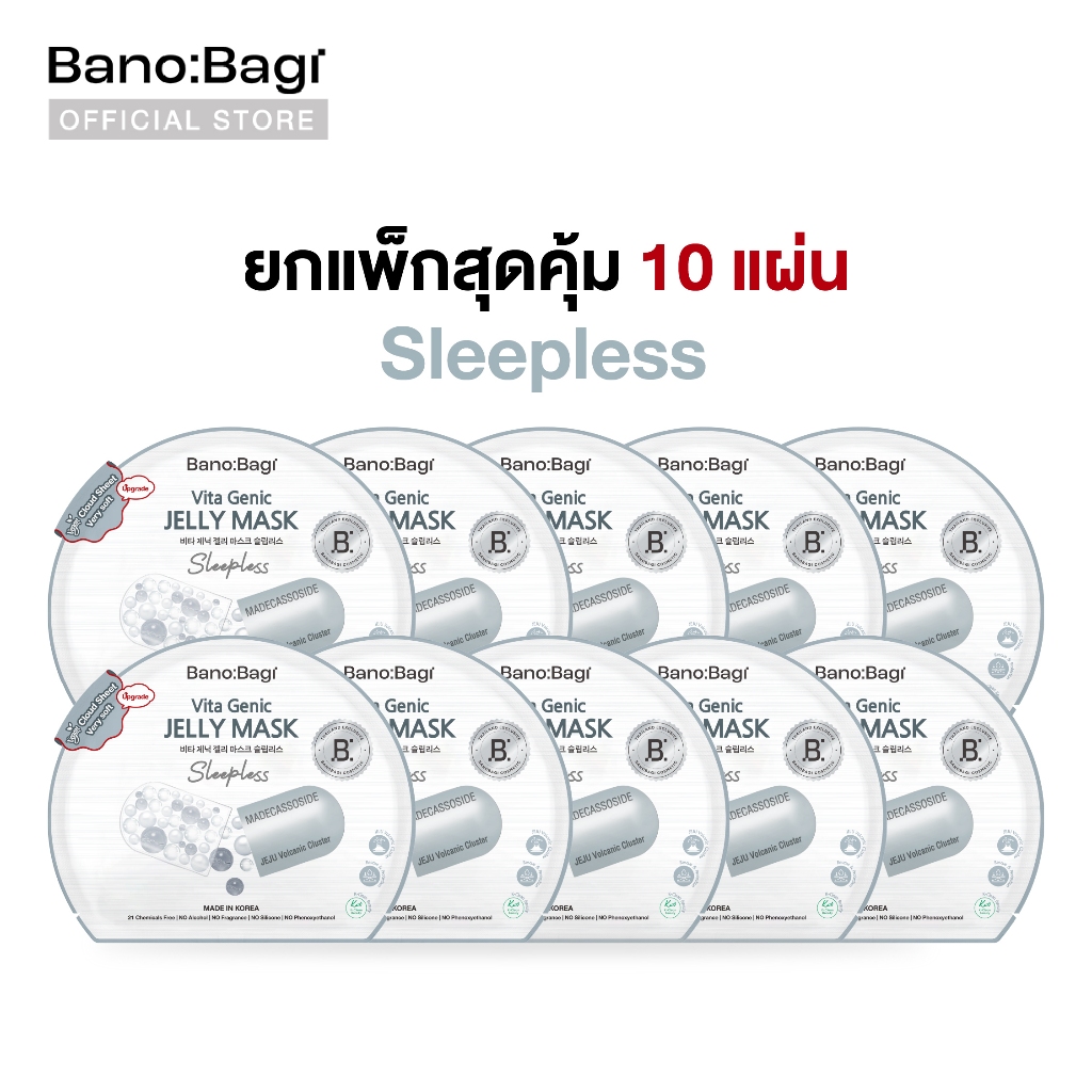 (ยกแพ็กสุดคุ้ม 10 แผ่น) BANOBAGI Vita Genic Jelly Mask - Sleepless บาโนบากิ เจลลี่มาส์กสู ตรหน้าเฟรชพักผ่อนเต็มร้อย