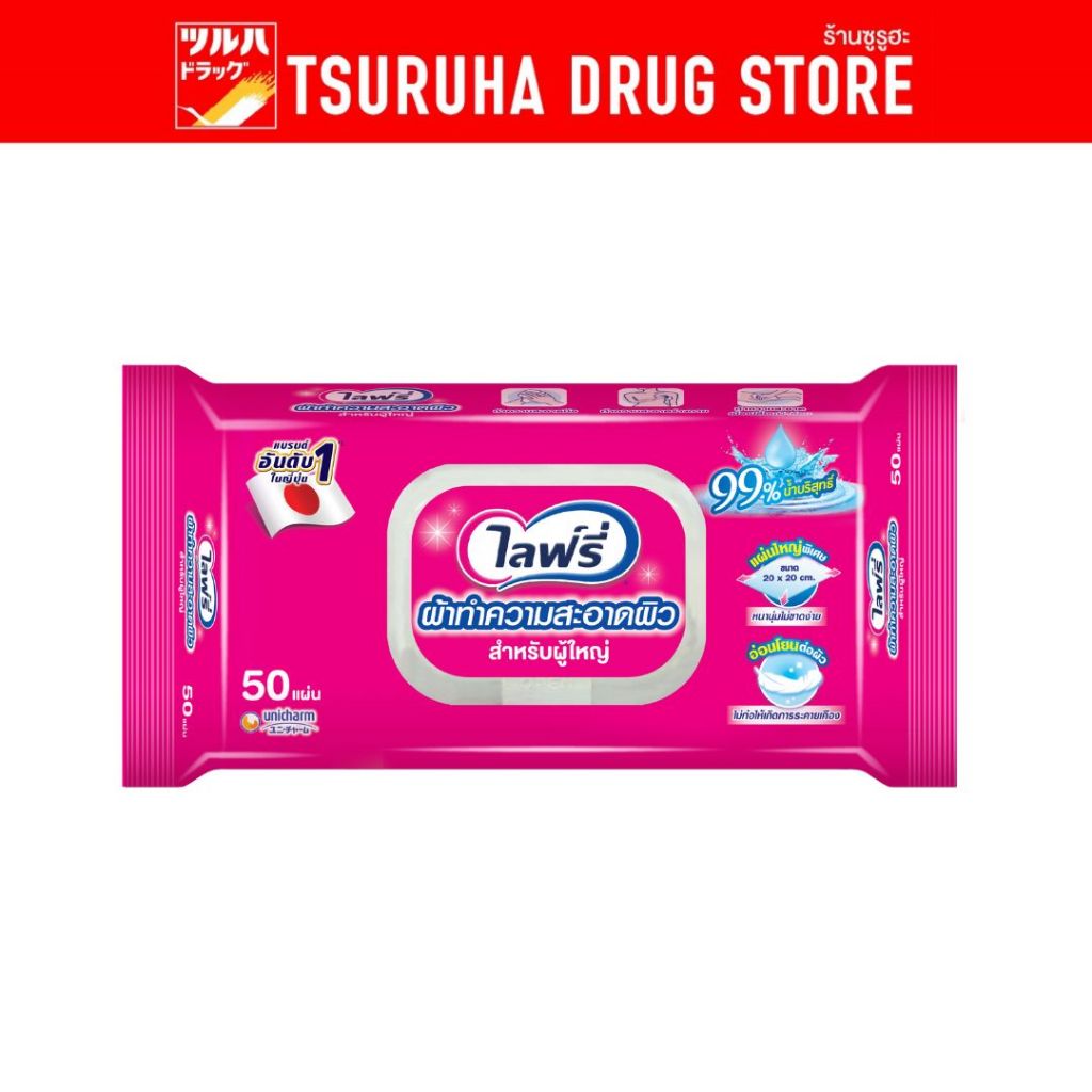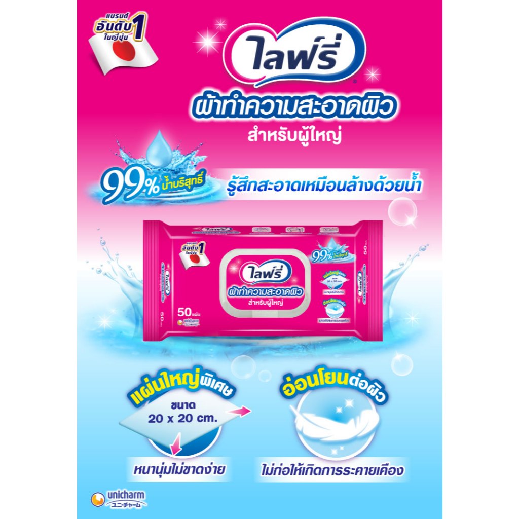 ไลฟ์รี่ ผ้าทำความสะอาดผิวสำหรับผู้ใหญ่ 50 ชิ้น / Lifree Adult Wipe 50 Pcs.