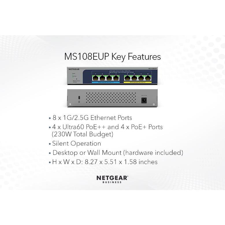 Netgear MS108EUP 8-port Multi-Gigabit (2.5G) Ultra60 PoE++ Ethernet Plus Switch