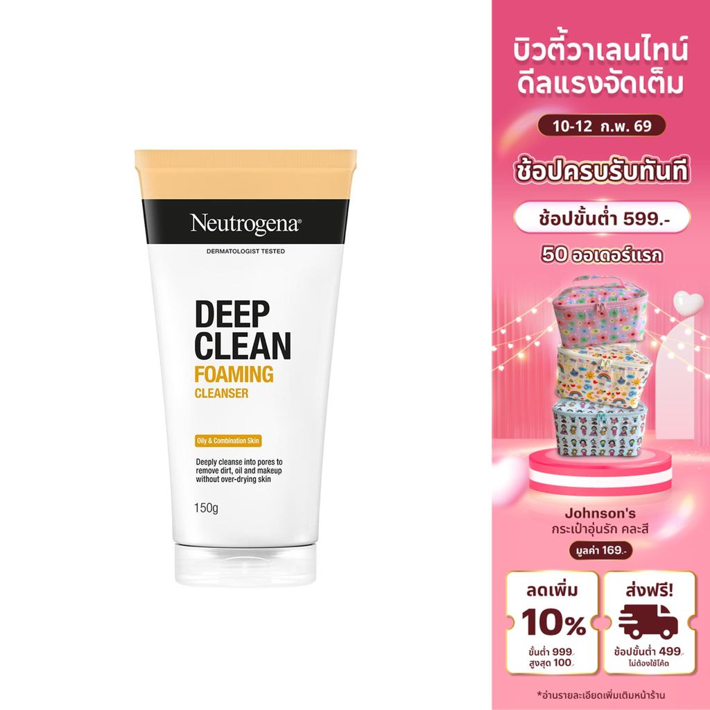 Neutrogena นูโทรจีนา ดีพ คลีน คุชชั่น โฟมมิ่ง คลีนเซอร์ 150กรัม, โฟมล้างหน้า, อ่อนโยน ไม่ทำร้ายปราการผิว