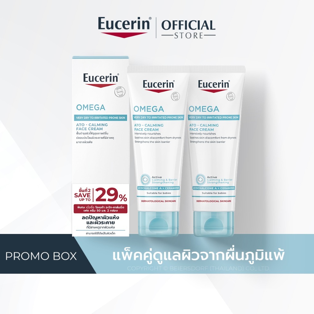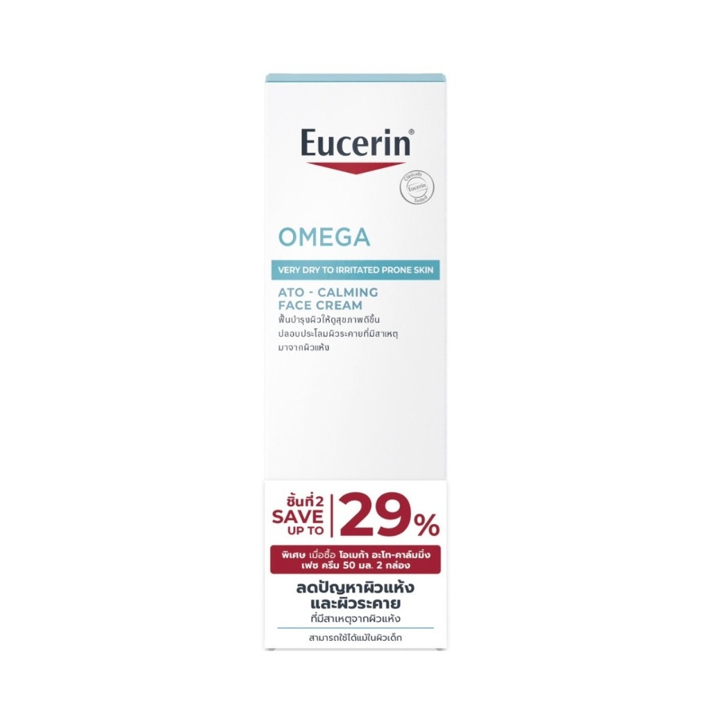 Exp 08/27 Eucerin OMEGA ATO-CALMING FACE CREAM 50ml ยูเซอริน โอเมก้า ครีม ผิวแพ้ง่าย ลดรอยแดง