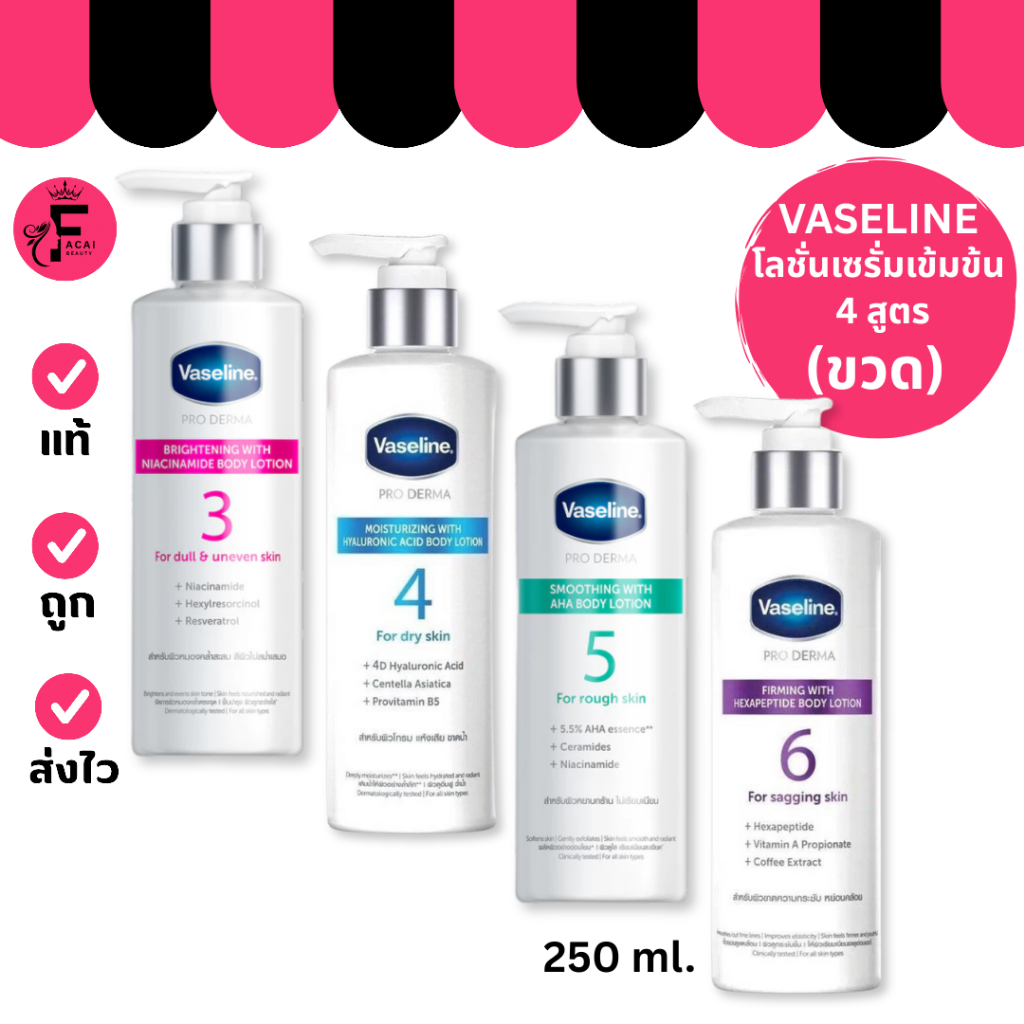(1 ขวด) Vaseline Pro Derma Body Lotion วาสลีน โลชั่นเซรั่มเข้มข้น ( 250 ml. )