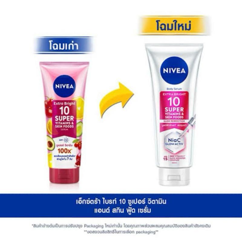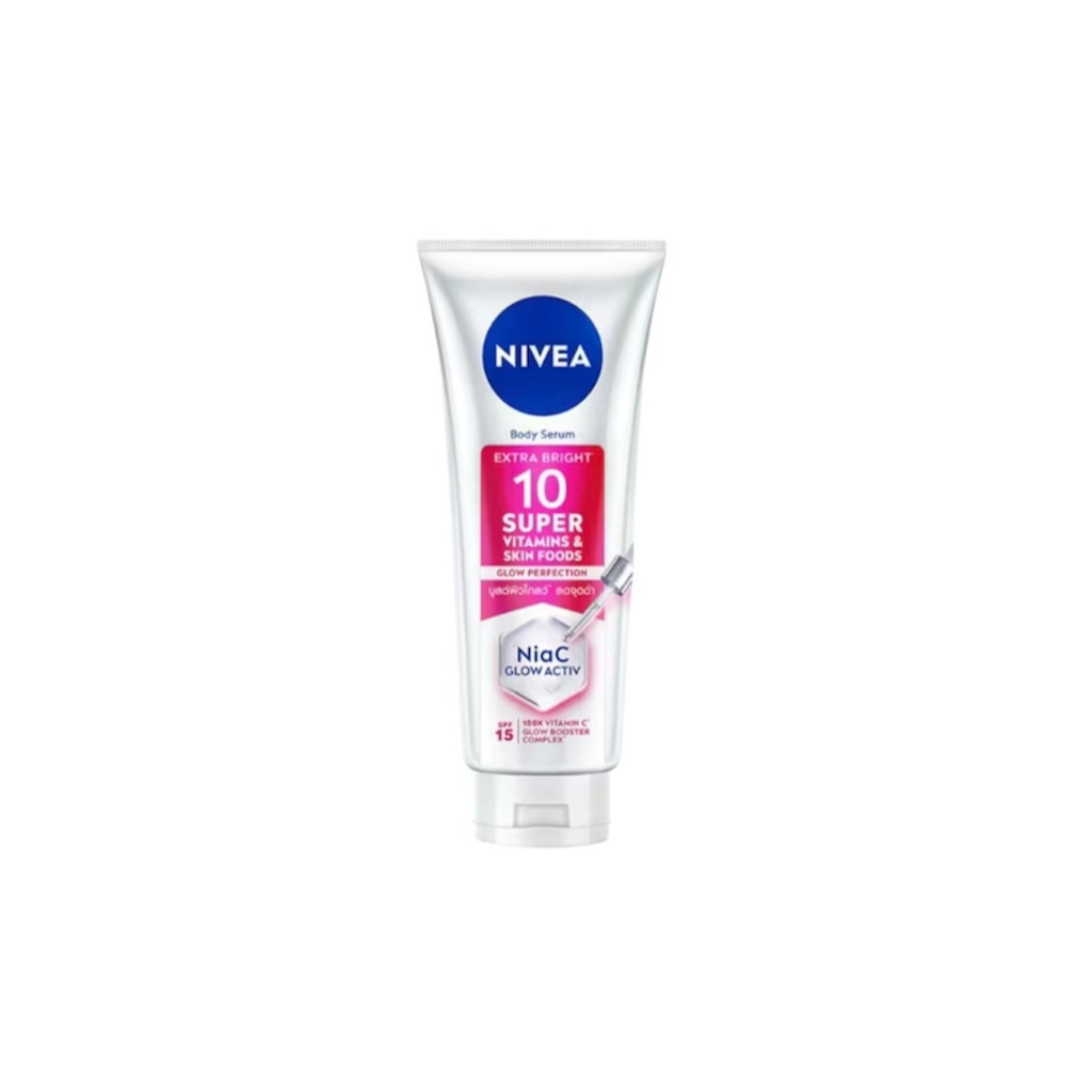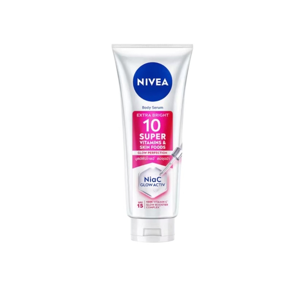 ( สีชมพู ) นีเวีย NIVEA เซรั่มบำรุงผิวกาย เอ็กซ์ตร้า ไบรท์ 10 ซูเปอร์ วิตามิน แอนด์ สกิน ฟู้ด โกลว์ ขนาด 70-300 มล.