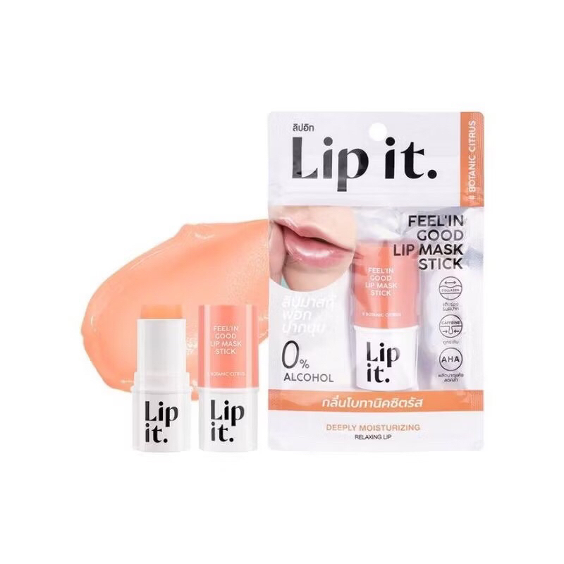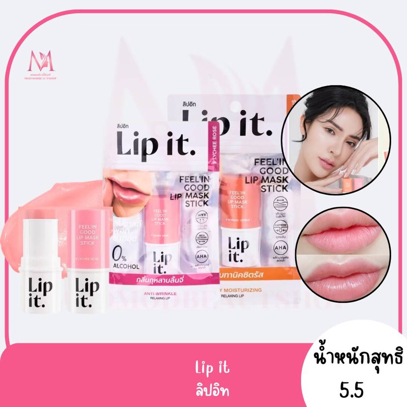 Lip it ลิปมาส์ก ลิปอิท Feel'in Good Mask Stick บำรุงริมฝีปาก แก้ปากคล้ำ ปากแห้ง ปากลอก เป็นขุย มาส์กปาก ลิปพี่นัท 5.5g