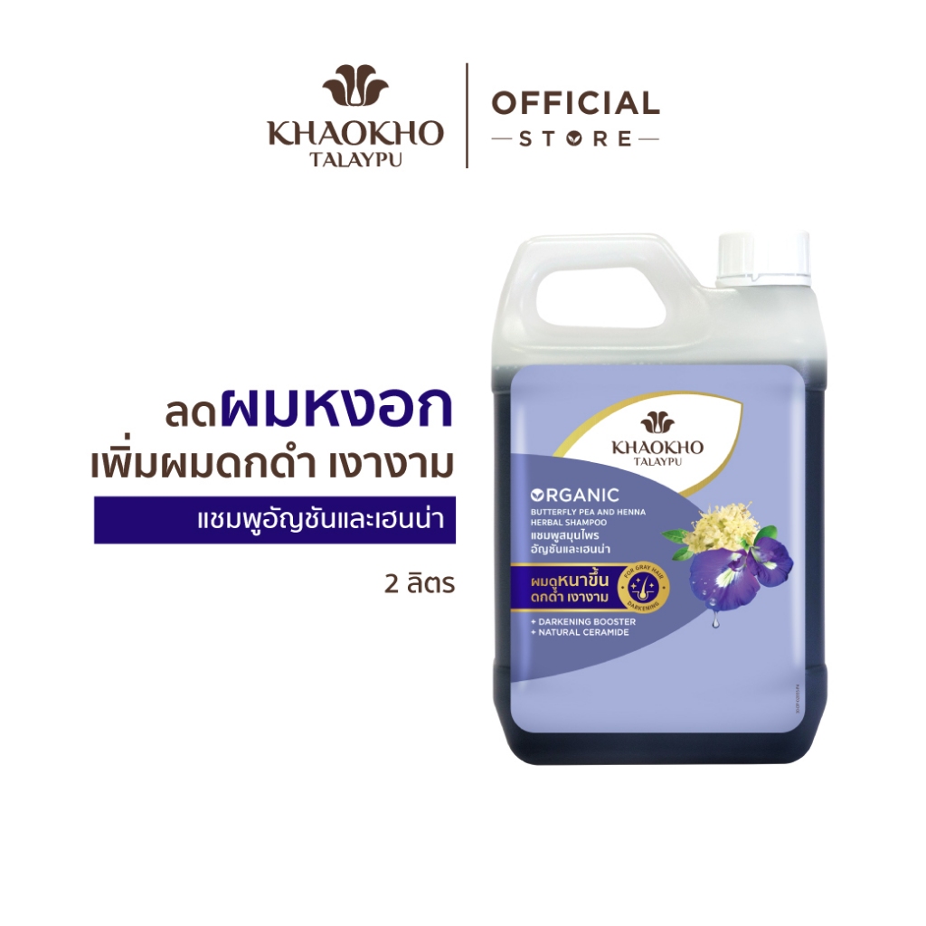 Khaokho Talaypu เขาค้อทะเลภู แชมพูแบบแกลลอนรีฟิล สูตรอัญชันและเฮนน่า ช่วยลดผมหงอก (2,000 มล.)