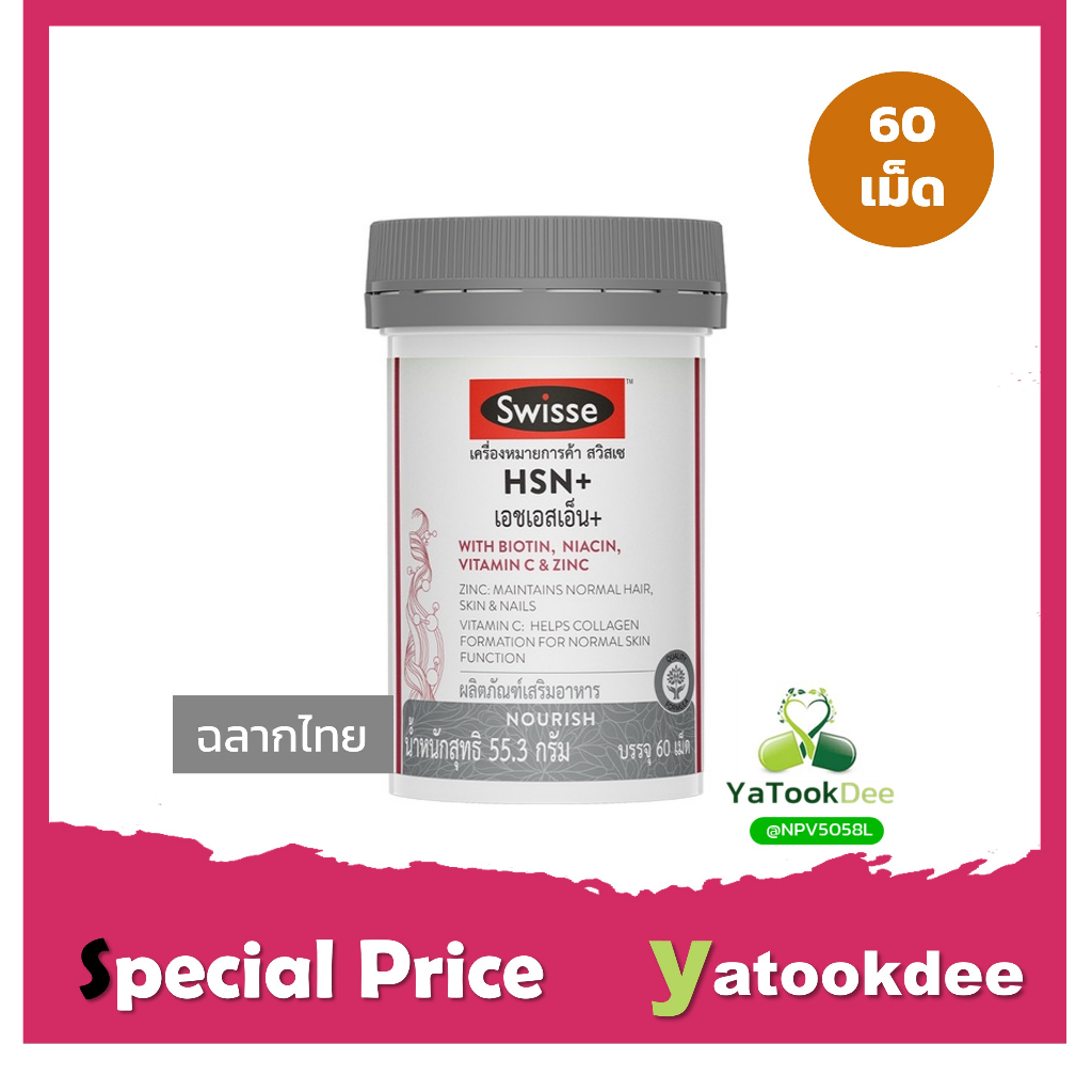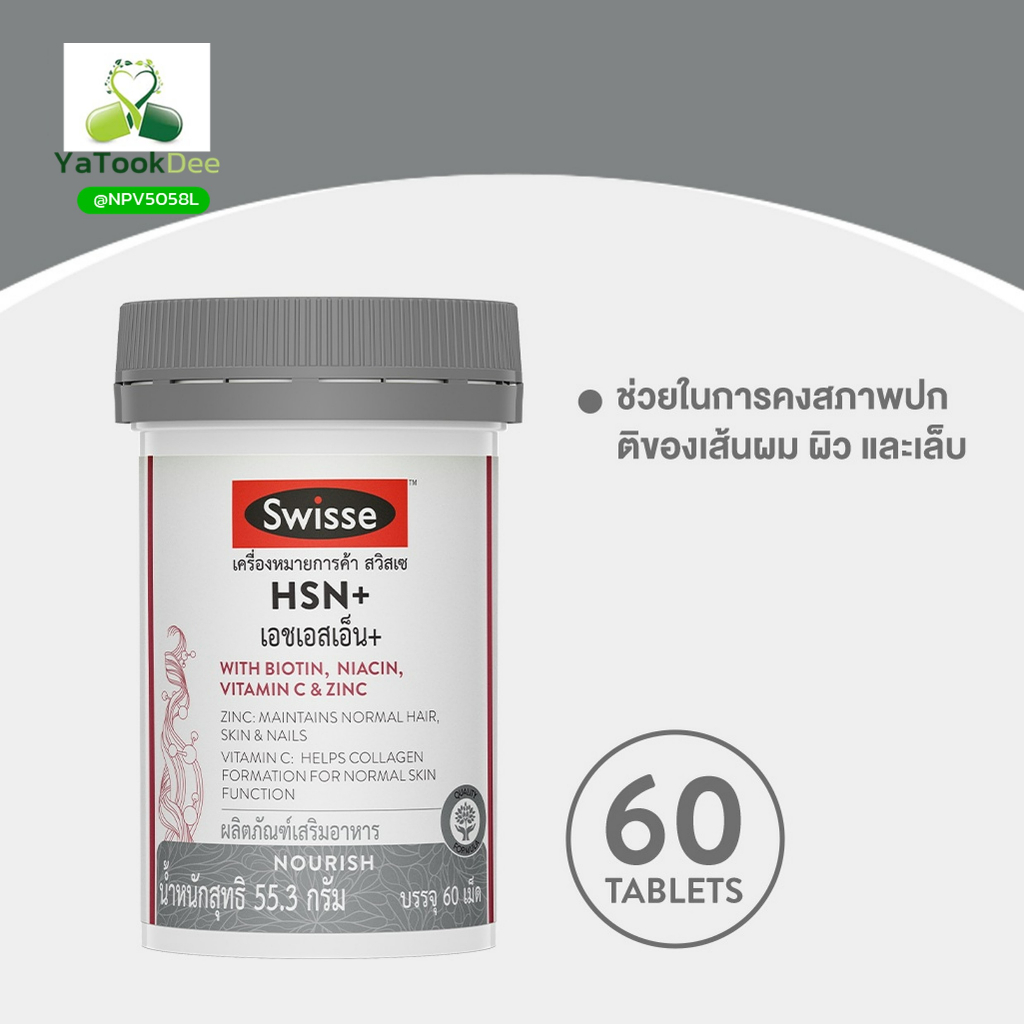 Swisse HSN+ เอช เอส เอ็น พลัส 60 เม็ด บำรุงเส้นผม ผิว และเล็บ: ผมไม่ร่วง ผิวสดใส เล็บแข็งแรง