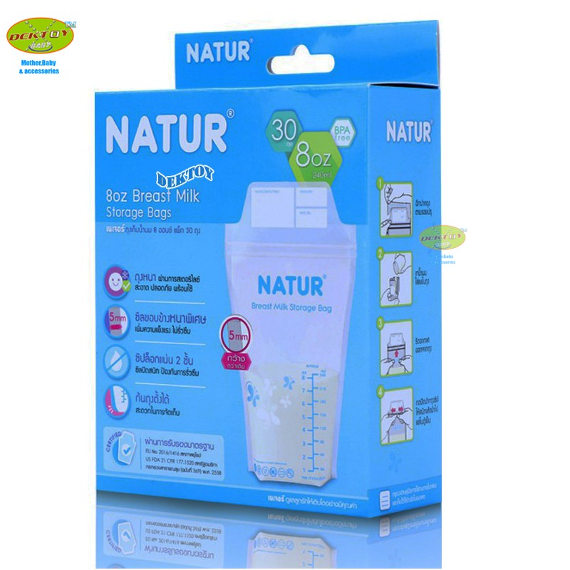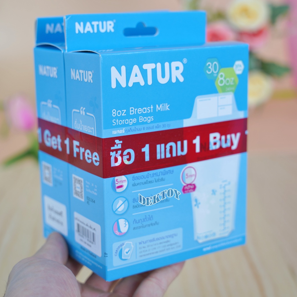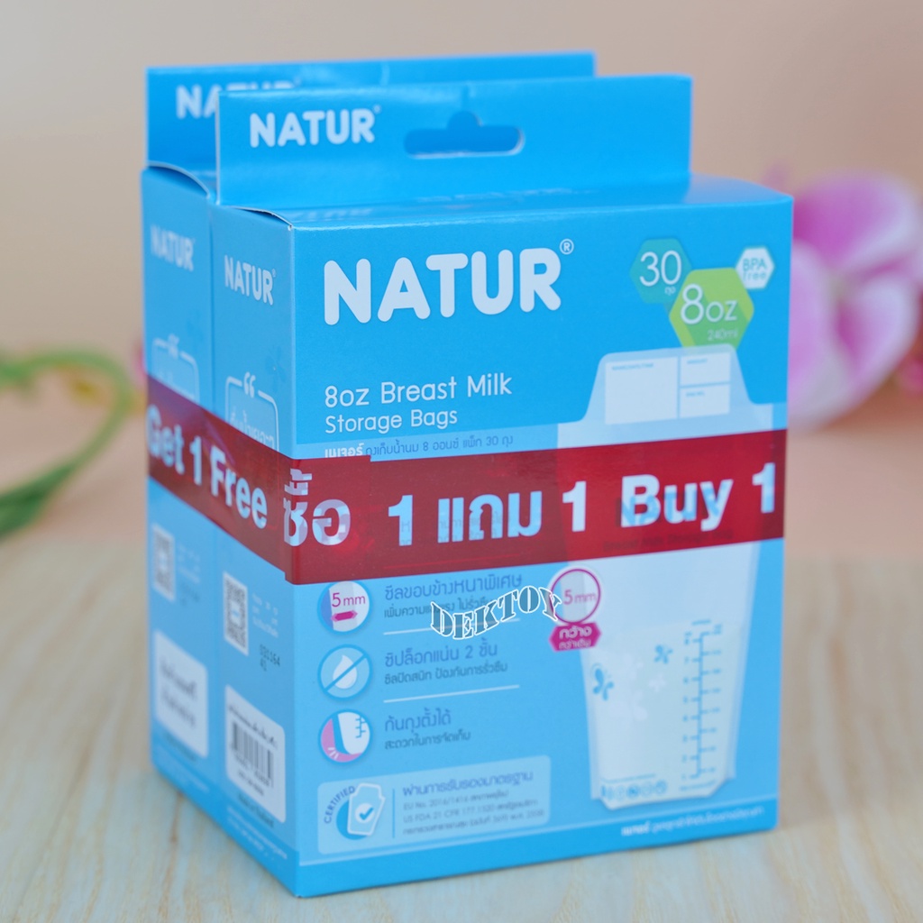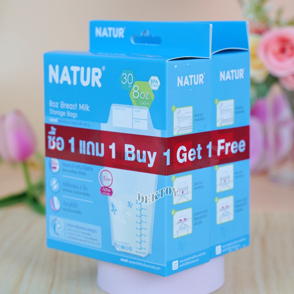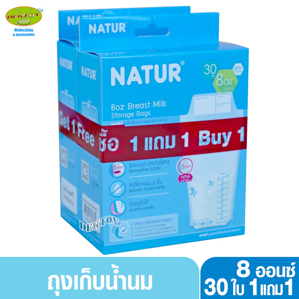 1 แถม1 NATUR เนเจอร์ ถุงเก็บน้ำนมเนเจอร์ ซีลขอบข้างหนาพิเศษ 8 ออนซ์ 30 ใบ