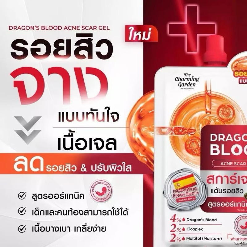 Dragon Blood ดราก้อนบลัช The Charming Garden Dragon’s Blood เจลบำรุงผิวหน้า ลดรอยแดง รอยดำที่เกิดจากสิว สการ์เจล