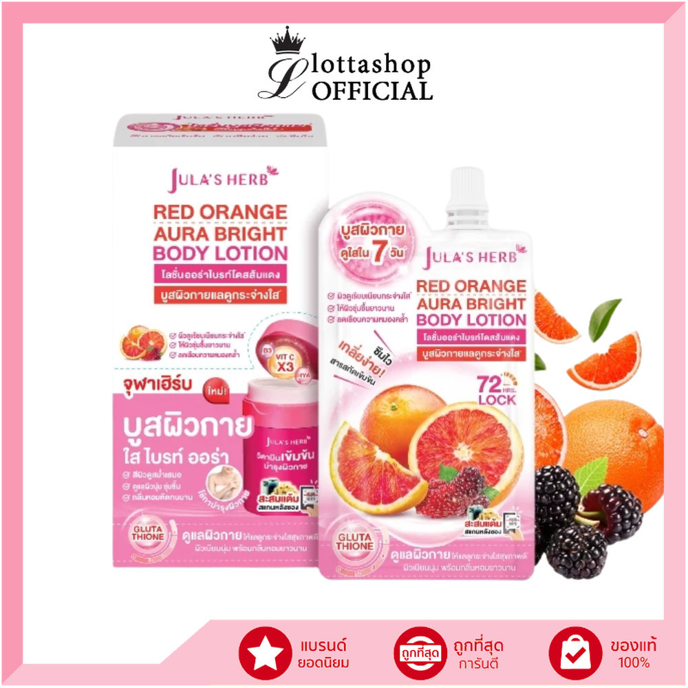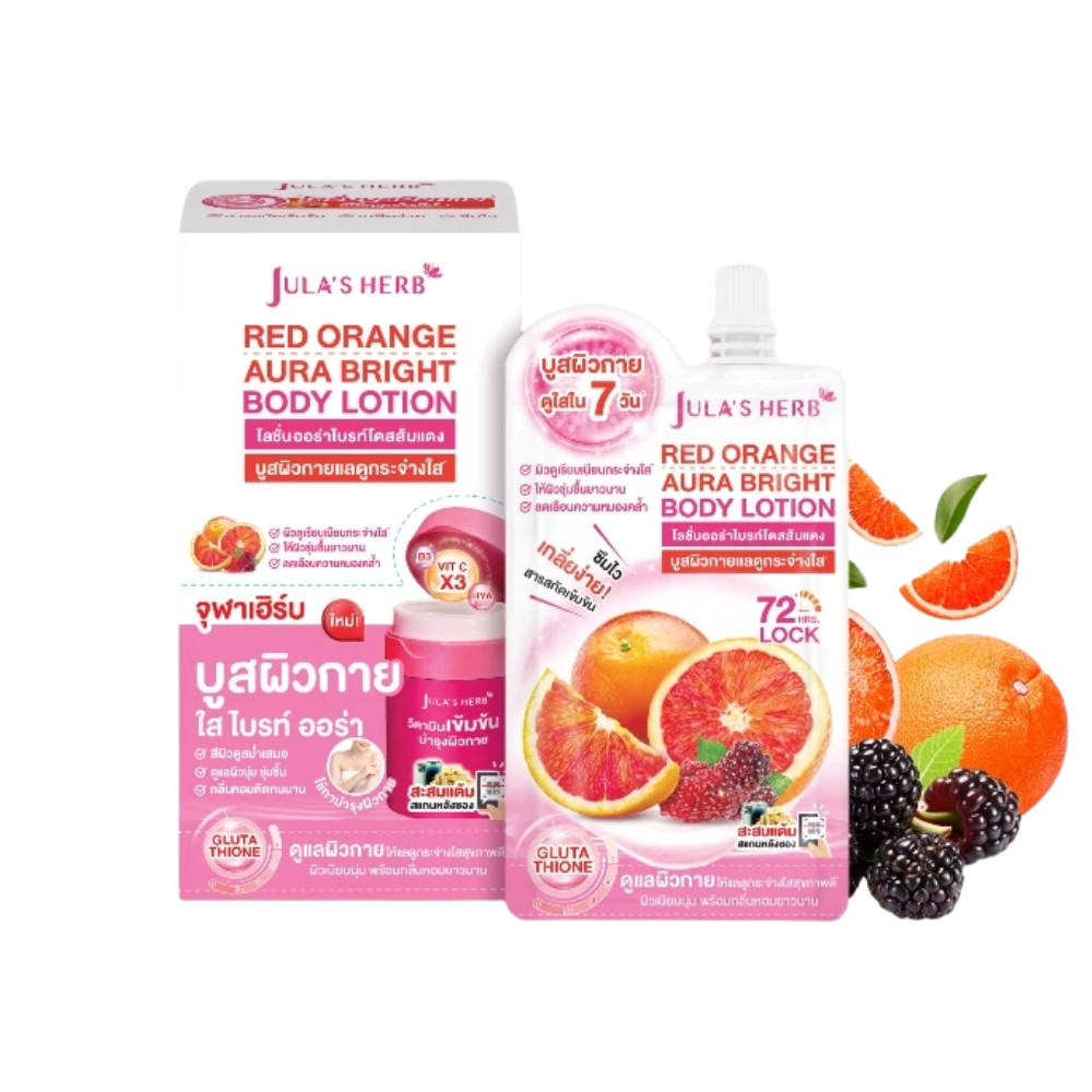 🔥แท้/ดีลสุดคุ้ม/ไลฟ์ทุกวัน🔥(กล่องx6ซอง) Jula's Herb red Orange Aura Bright Body Lotion บอดี้โลชั่น (M)