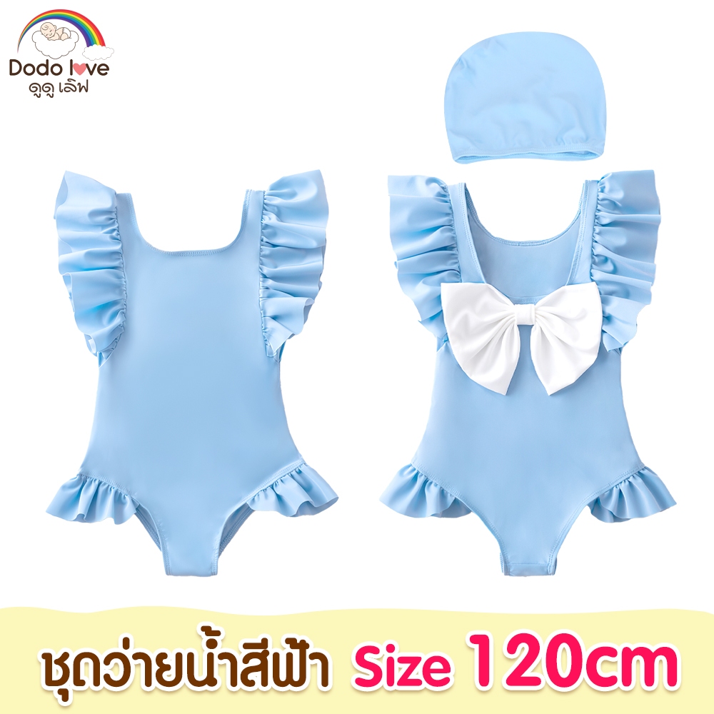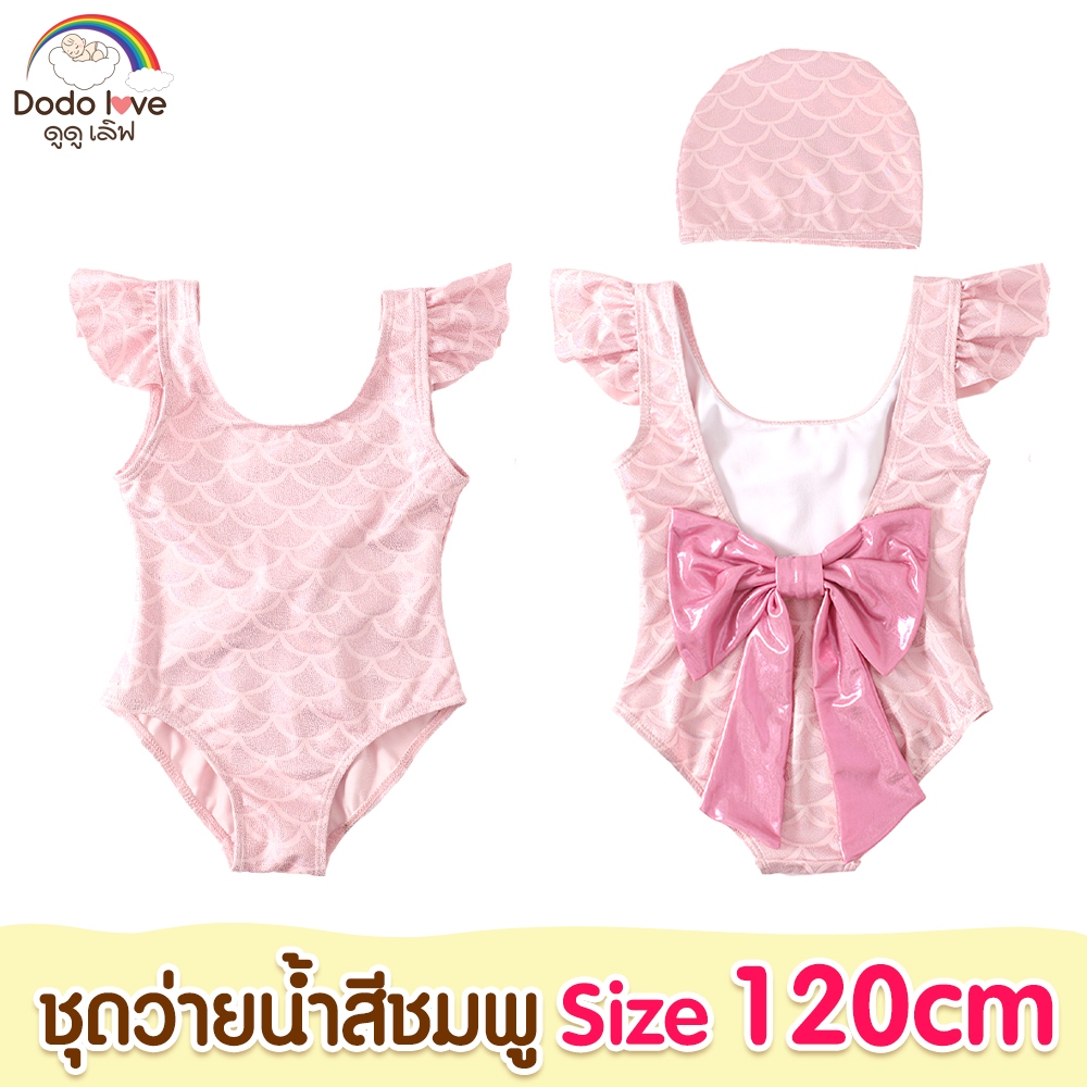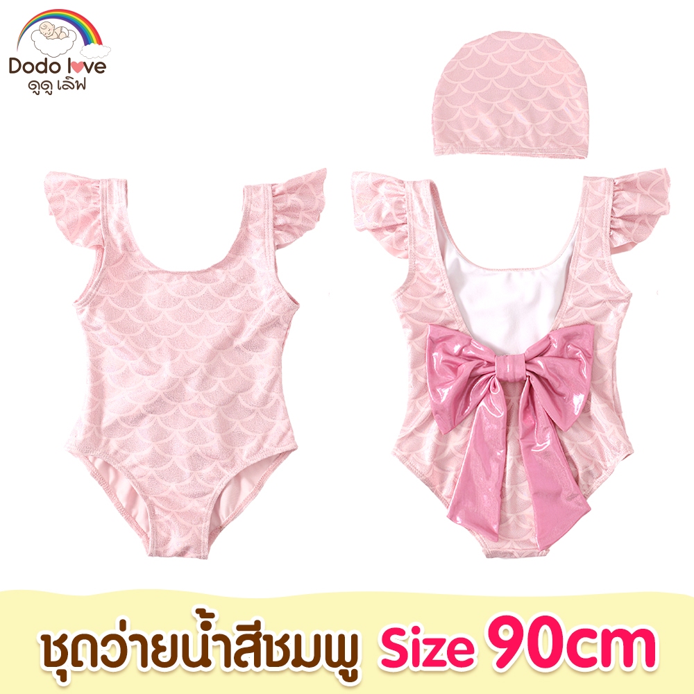DODOLOVE ชุดว่ายน้ำเด็กผู้หญิงแขนกุด มีโบว์ ชุดว่ายน้ำ ทรงบิกินี่พร้อมหมวก ผ้ายืดหยุ่นใส่สบาย