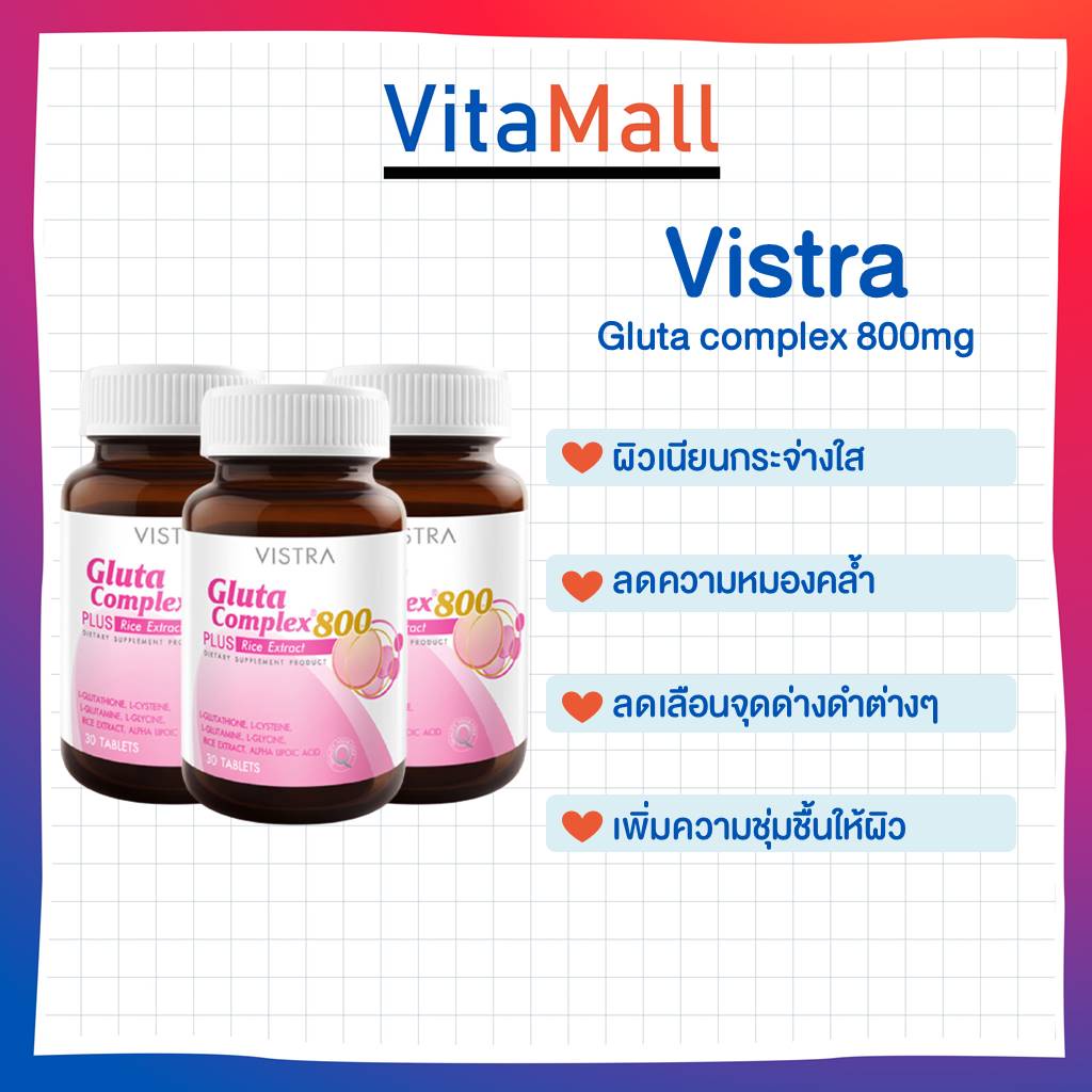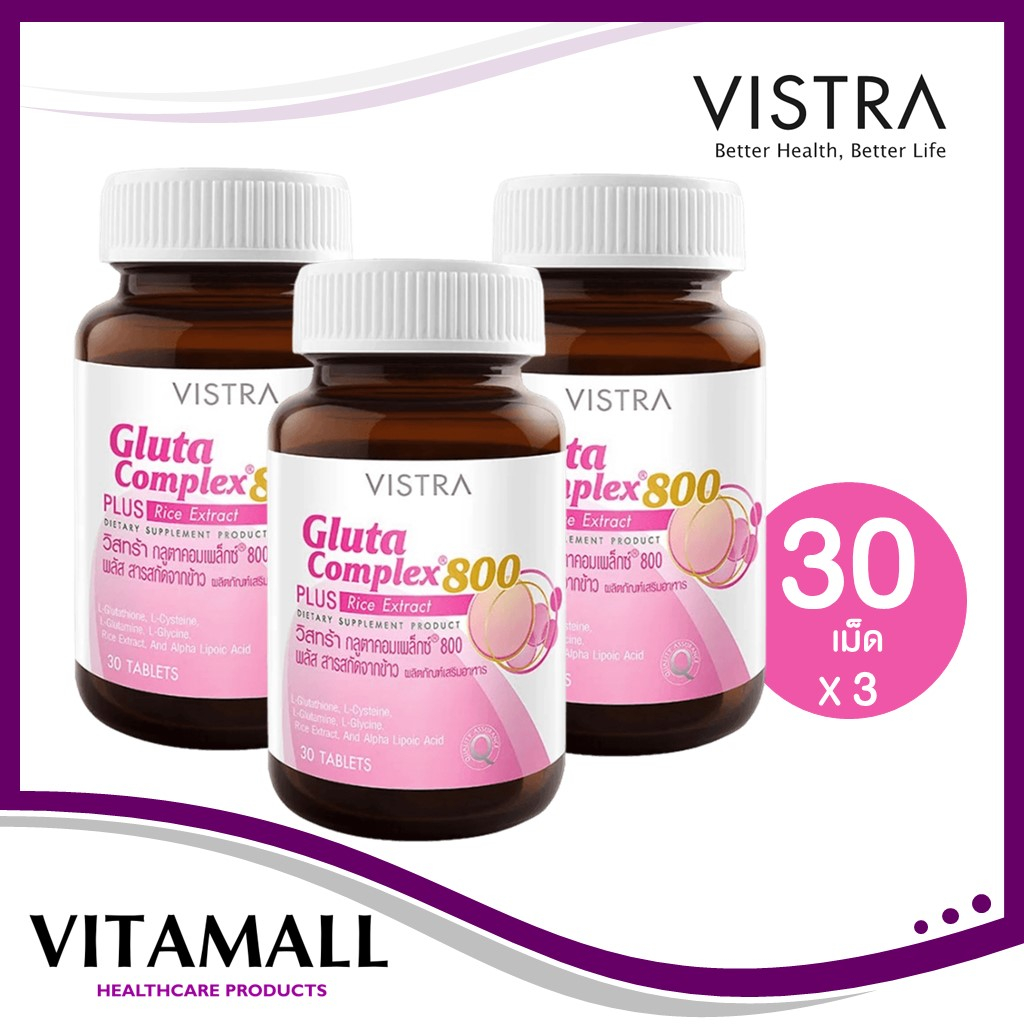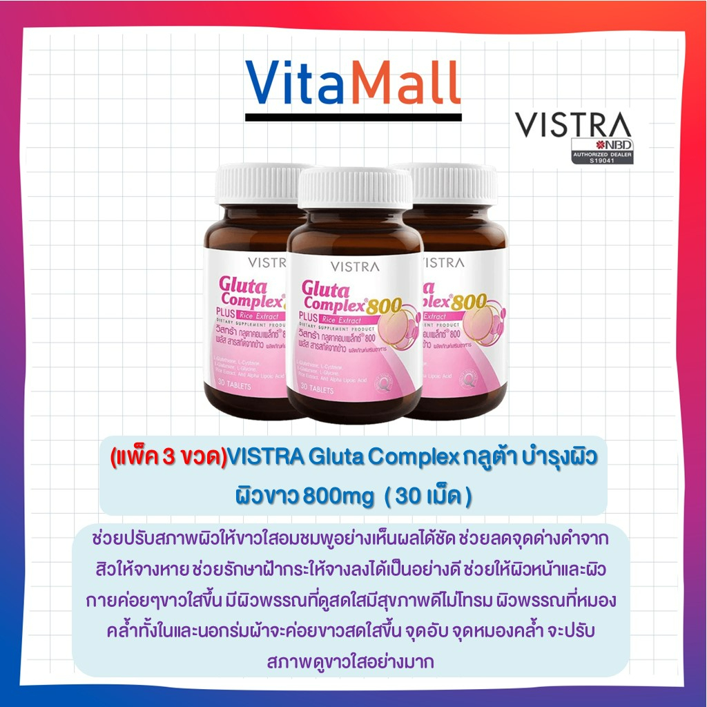 VISTRA GLUTA COMPLEX 800mg (30 เม็ด)ช่วยลดริ้วรอย และร่องลึกของเซลล์ผิวให้ตื้นขึ้น((แพ็ค3ขวด))