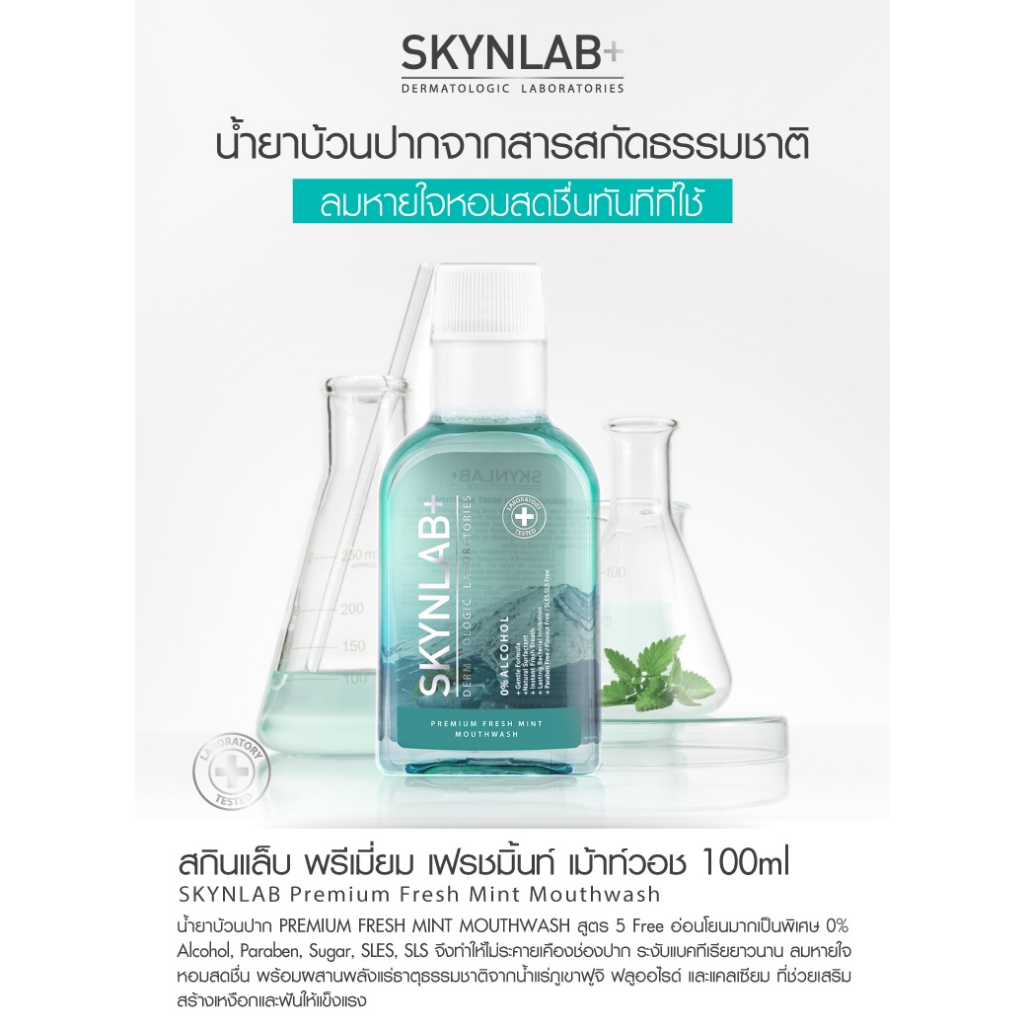 เขียว【เล็ก100ml.】Skynlab น้ำยาบ้วนปาก 【สูตรอ่อนโยน】ลดกลิ่นปาก Skynlab Premium Fresh Mint Mouthwash