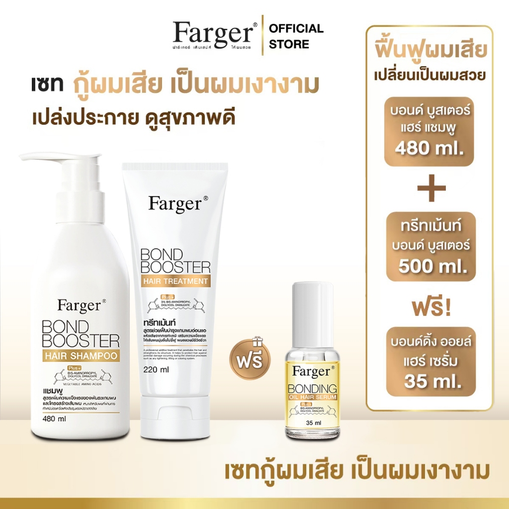 [2ฟรี1] Farger Bond Booster Shampoo480ml + Treatment 220 ml. + Serum 35 ml. บำรุงผม กู้ผมเสีย ช่วยฟื้นฟูผมแห้งเสีย