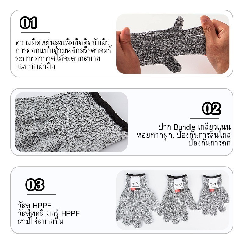 ถุงมือกันบาด HPPEวัสดุ มีให้เหลือก 3 ขนาด(แพ็ค 1 คู่) ถุงมือนิรภัย เกรด 5 ป้องกันมือ ใช้สำหรับงานช่าง ทำสวน G3268