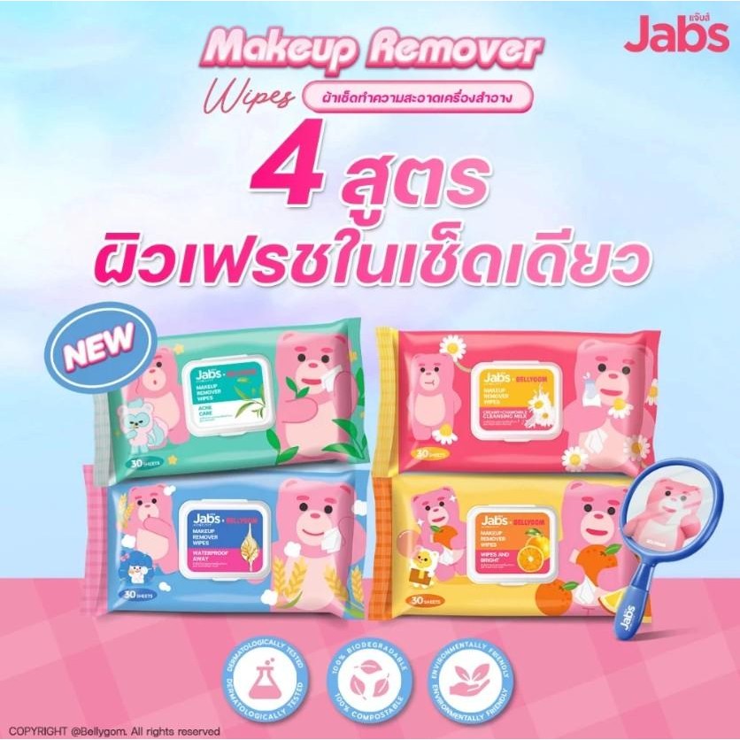 [10 แผ่น] ผ้าเช็ดทำความสะอาดเครื่องสำอางแจ๊บส์ Jabs x BELLYGOM 1 ห่อ