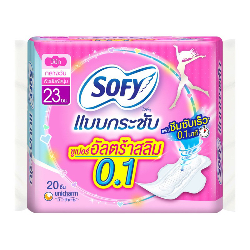 ผ้าอนามัย โซฟี แบบกระชับ ซูเปอร์อัลตร้าสลิม 0.1(ซึมไว 0.1นาที) 23/25/29/35ซม