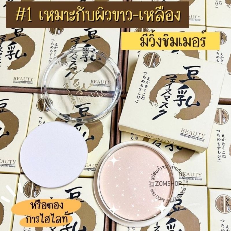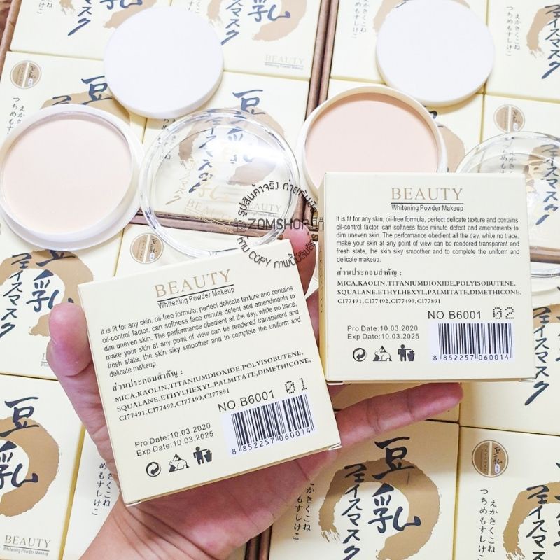 【รุ่นมีกล่อง】แป้งตลับ แป้งเต้าหู้ 【EXP:10.03.2025】ผสมQ10 หน้าใสเด้งทั้งวัน Beauty Whitening Powder Makeup 24g.