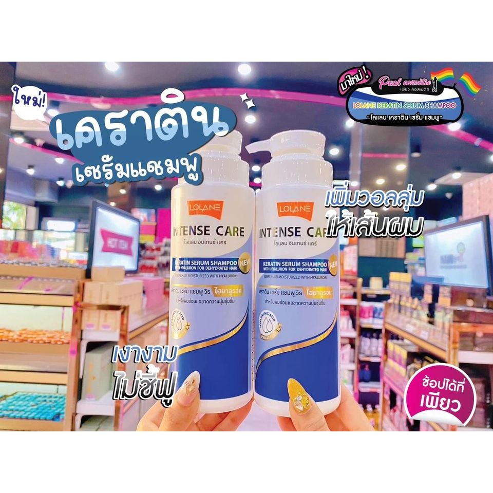 📣เพียวคอส📣Lolane Intense Care Keratin โลแลน อินเทนซ์ แคร์ เคราติน เซรั่ม แชมพู วิธ ไฮยาลูรอน400ml(แบบขวด)