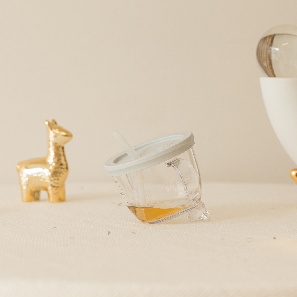 Richell (ริเชล) AXSTARS ถ้วยฝึกดูดรุ่นใหม่ หลอดกันสำลัก มีปุ่มกดช่วยดันน้ำ (Light Gray) 150มล.+แก้วหลอดดูดกัน