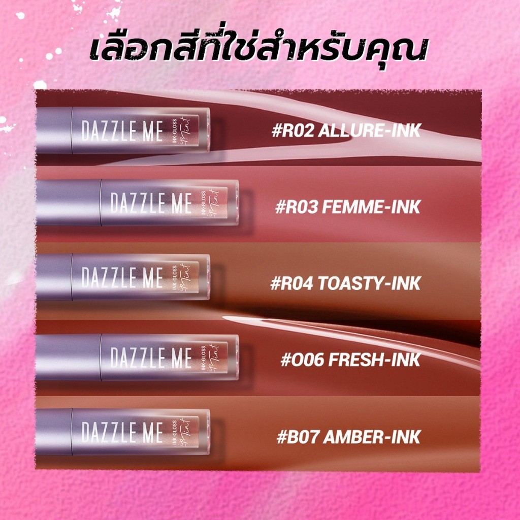 🔥แท้/ถูกที่สุด/ไลฟ์ทุกวัน🔥(1ชิ้น) DAZZLE ME Ink-Gloss Lip Tint ลิปกลอสทินท์ ปากฉ่ำวาว ติดทน จูบไม่หลุด กันน้ำ