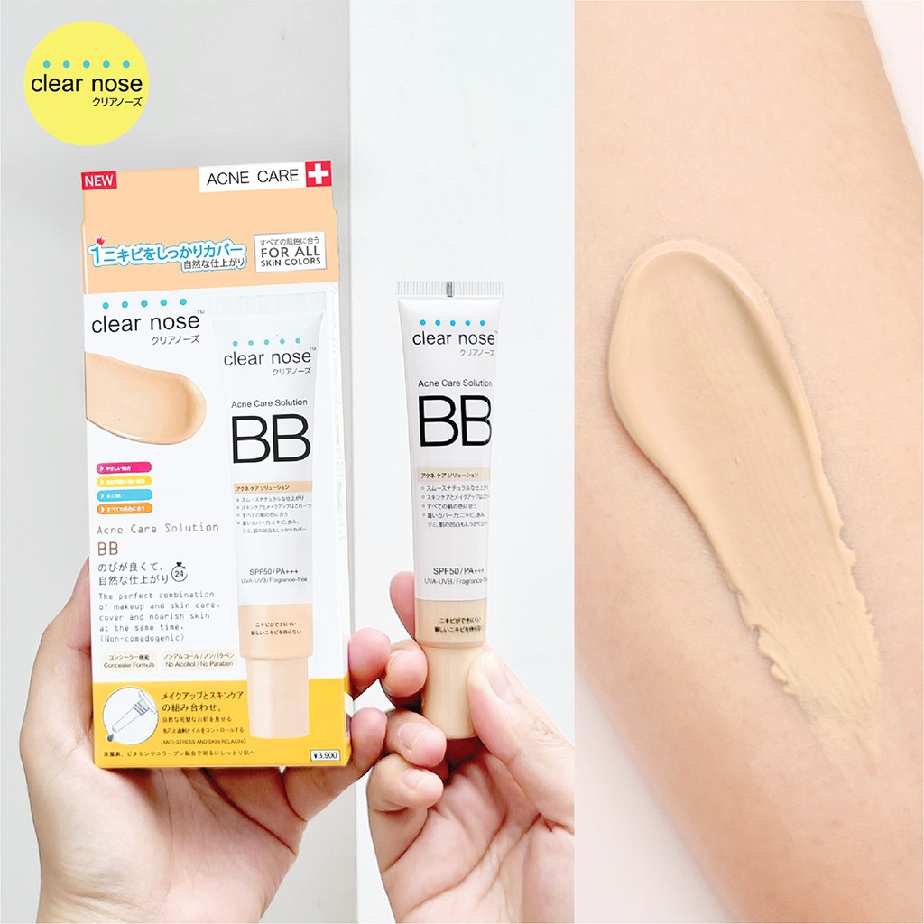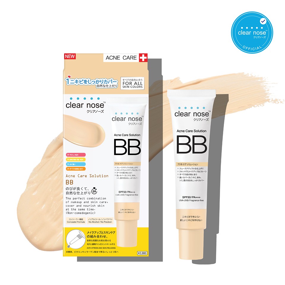 Clear Nose เคลียร์โนส แอคเน่แคร์ โซลูชั่น บีบี เอสพีเอฟ50/พีเอ+++ (30g) คอนซีลเลอร์ สิว ปกปิด รอยสิว คุมมัน กันน้ำ