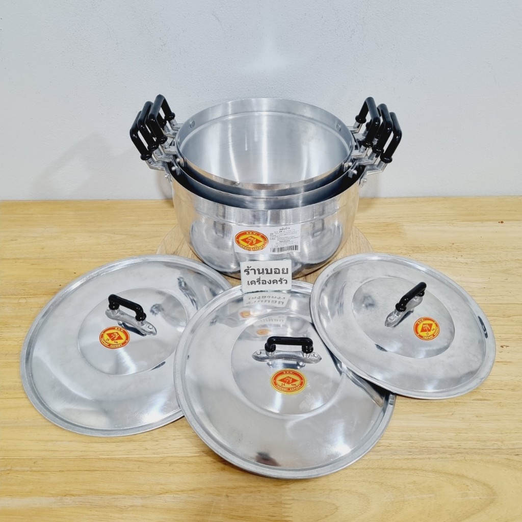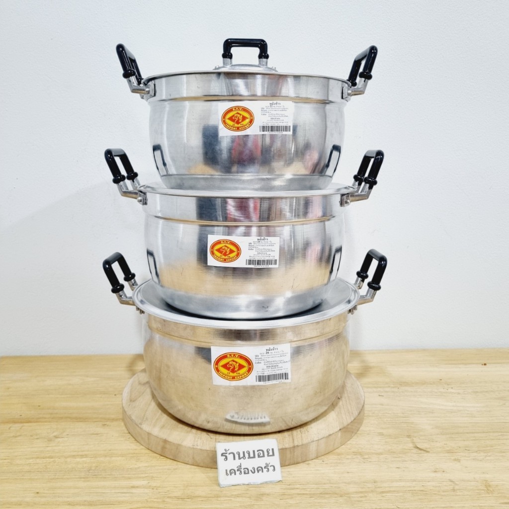 STV.หม้อต้มชุด3ใบ ตราหัวม้าขนาด22/24/26cm.หม้อ ต้มแกง แข็งแรง ทนทาน STV.หัวม้า