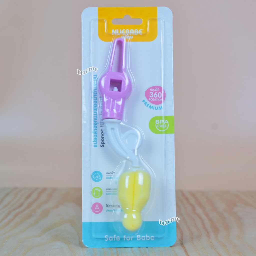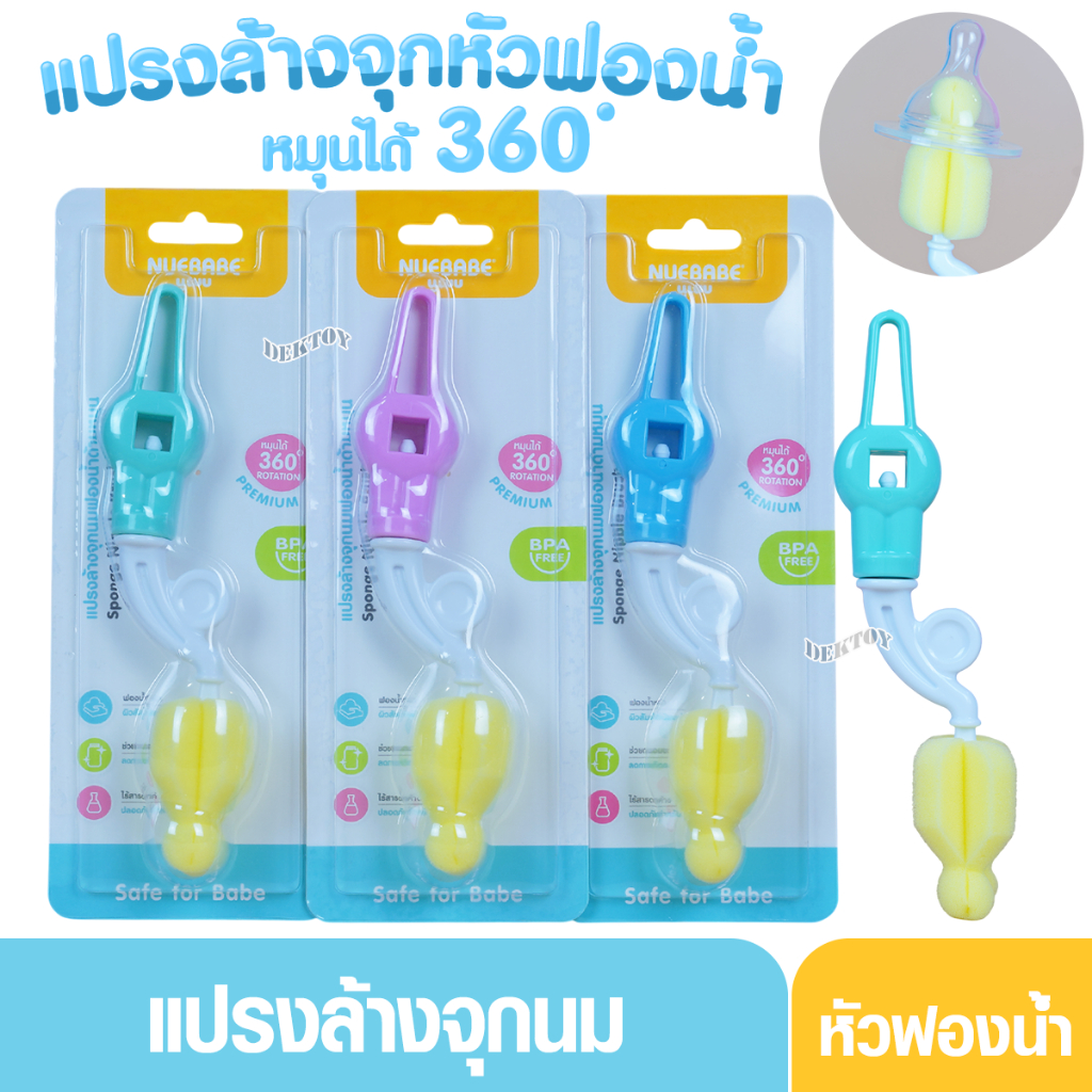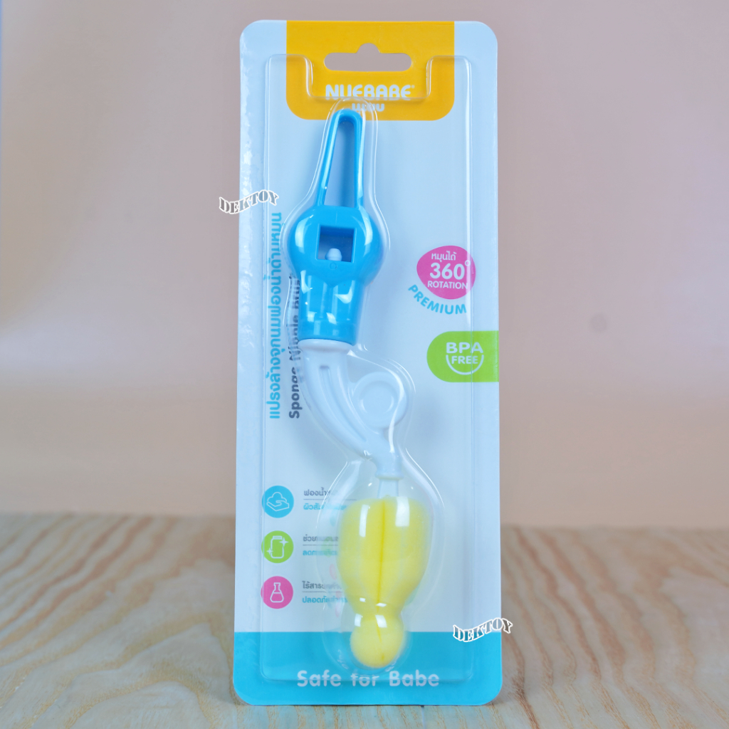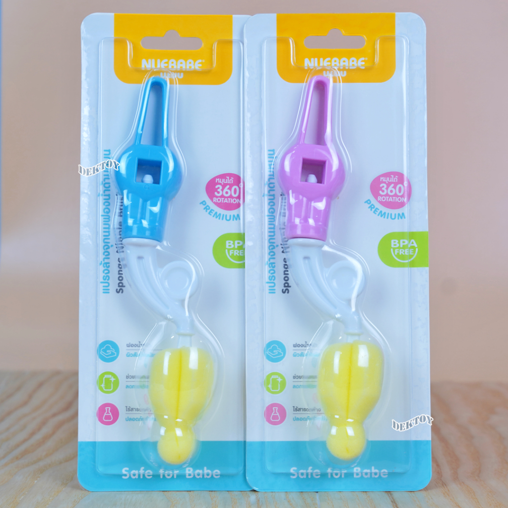 Nuebabe นูเบบ แปรงล้างจุกนมฟองน้ำ ด้ามหมุน 360 องศา BC0029