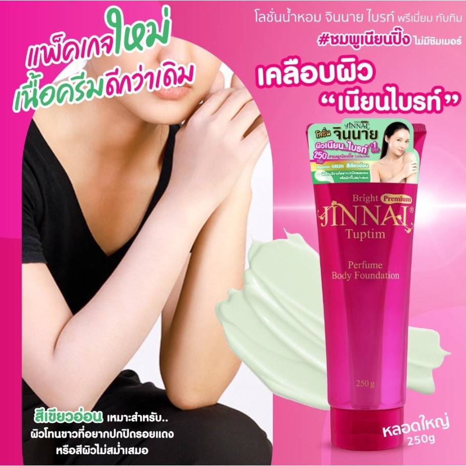 (80g/250g) Jinnai จินนาย ไบรท์ พรีเมี่ยม ทับทิม เพอร์ฟูมบอดี้ ฟาวเดชั่น #ชมพูเนียนปิ๊ง ไม่มีชิมเมอร์