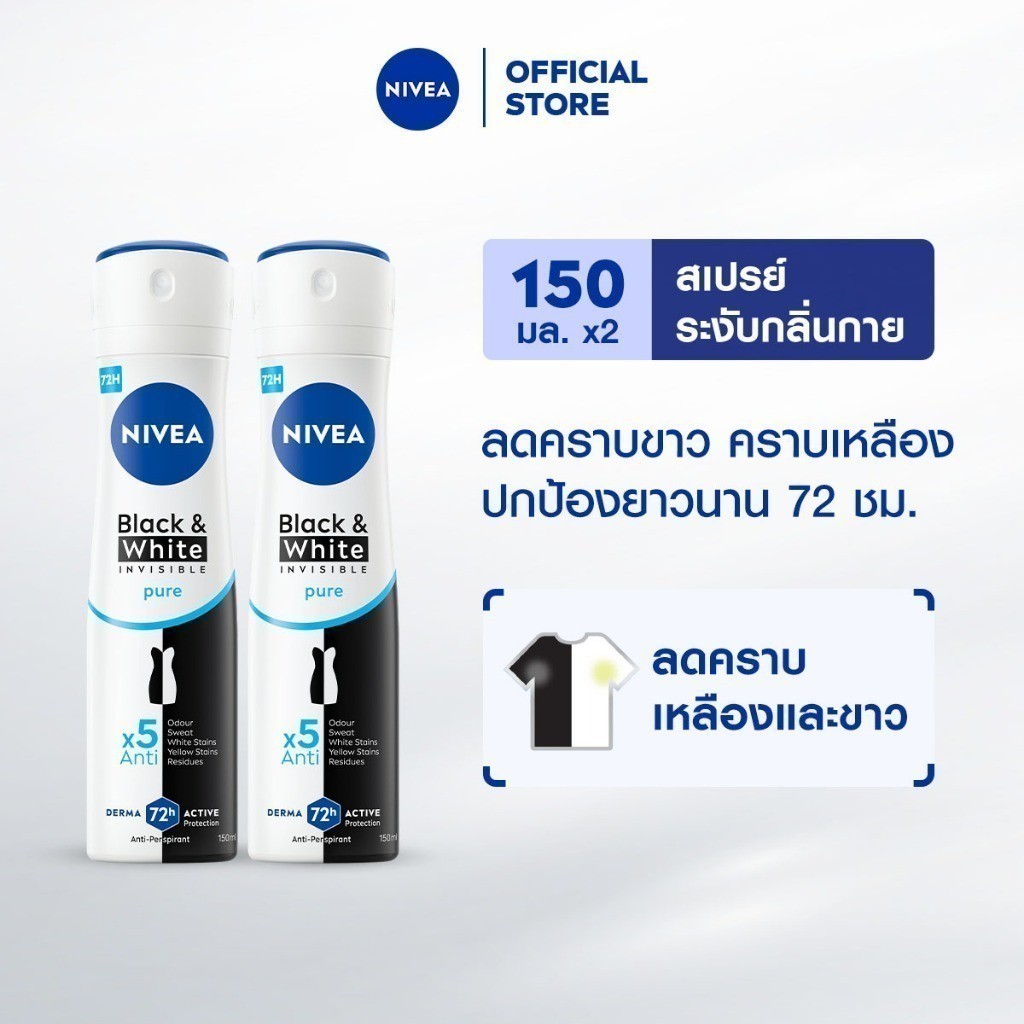 นีเวีย แบล็ค แอนด์ ไวท์ อินวิซิเบิ้ล เพียว สเปรย์ 150 มล. 2ชิ้น NIVEA