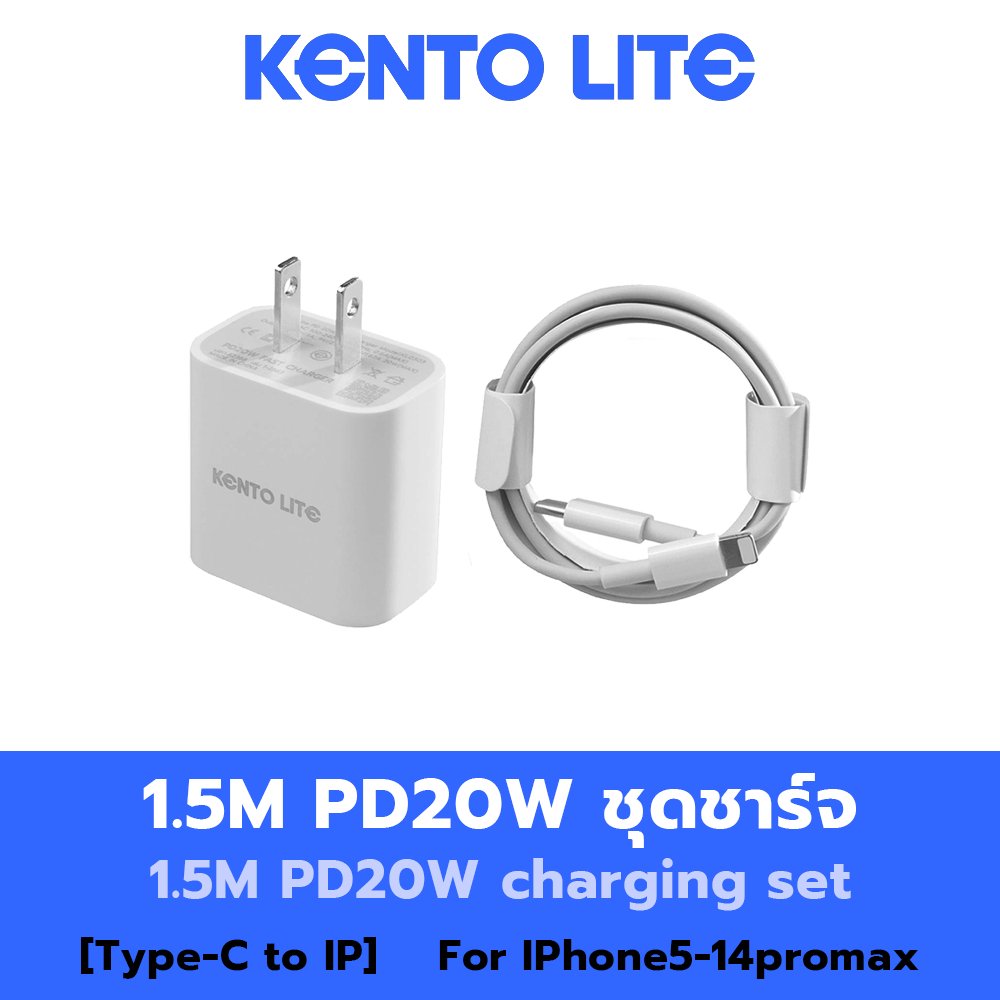 KENTO LITE PD Fast Charge สายชาร์จ + หัวชาร์จ 20W สำหรับ i5-16 ซีรีส์
