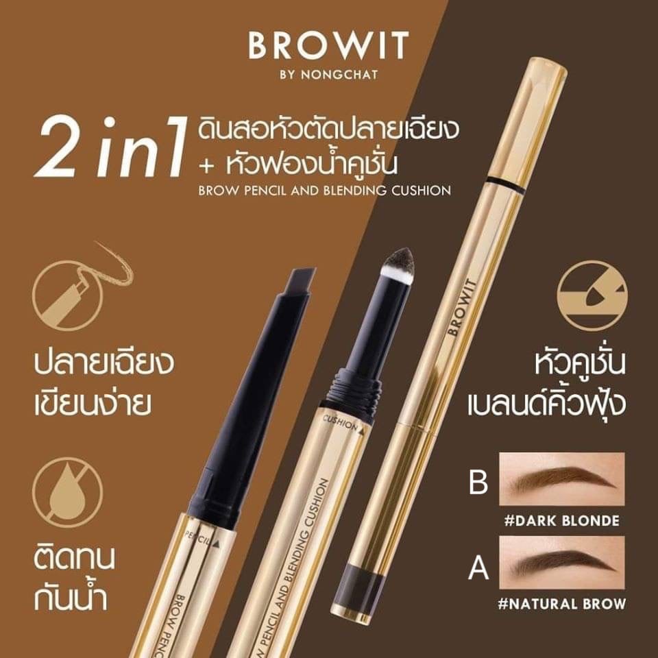 【น้องฉัตร】2in1 ดินสอเขียนคิ้ว+หัวคูชั่น BROWIT Brow Pencil And Blending Cushion