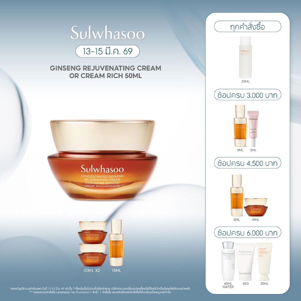 Sulwhasoo Concentrated Ginseng Rejuvenating Cream Rich 50ML / 30ML ครีมโสมสูตรเข้มข้น ฟื้นฟูผิวให้แลดูอ่อนเยาว์